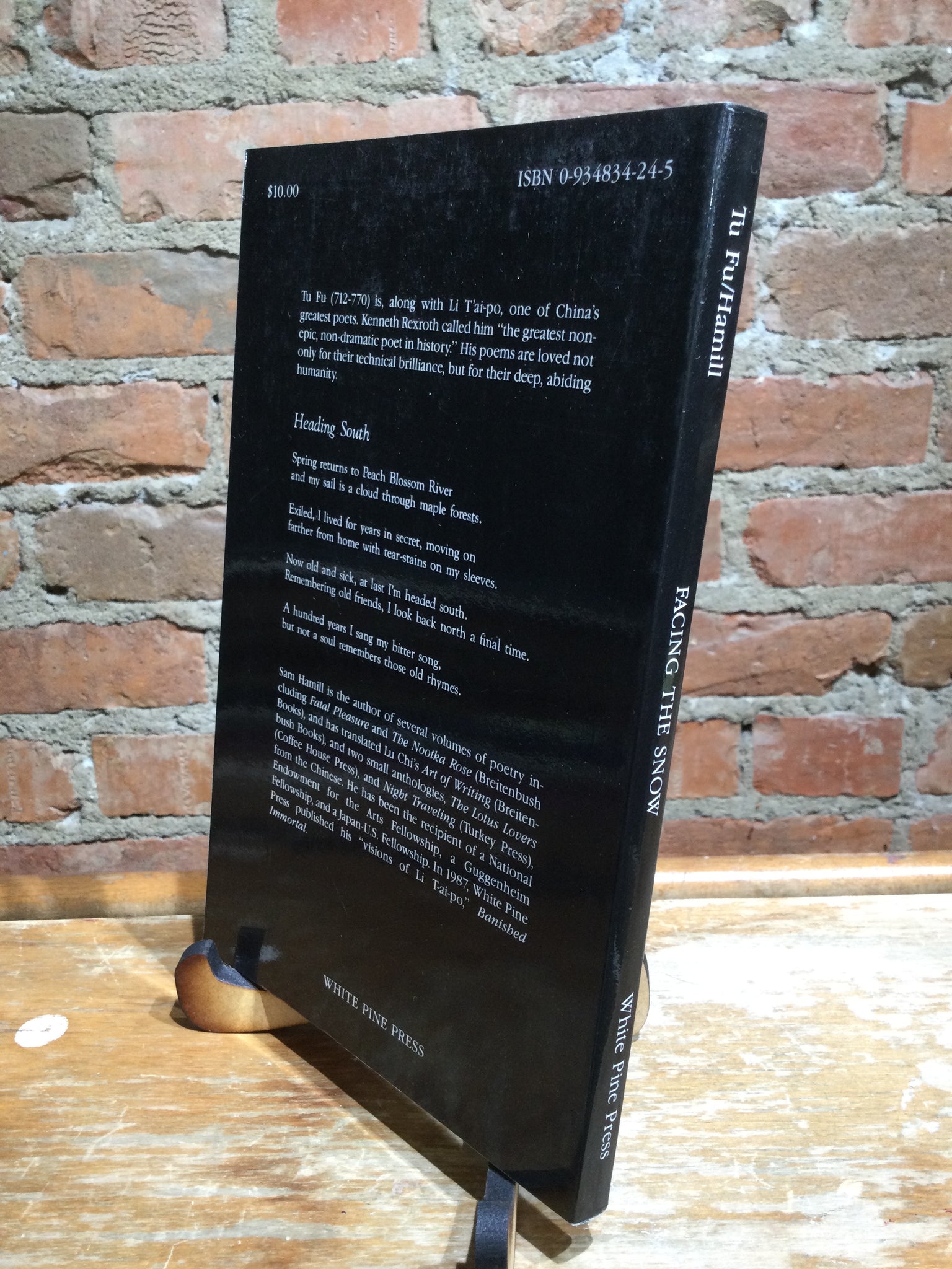 Facing the Snow: Visions of Tu Fu, by Tu Fu, trans. Sam Hamill (used paperback, ISBN 0934834245, White Pine Press, 1988)