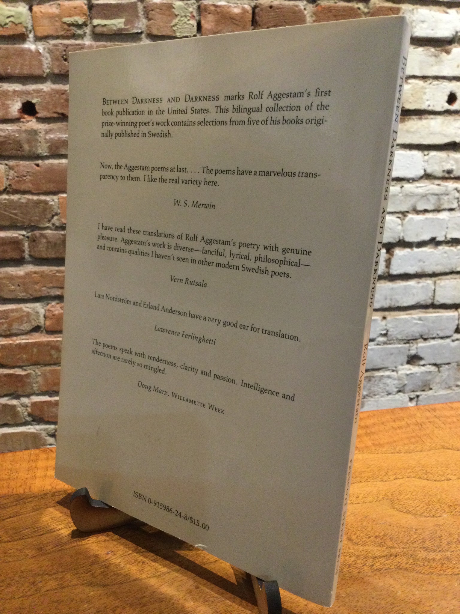 Between Darkness and Darkness, by Rolf Aggestam (used paperback, ISBN 0915986248, Prescott Street Press, 1989)