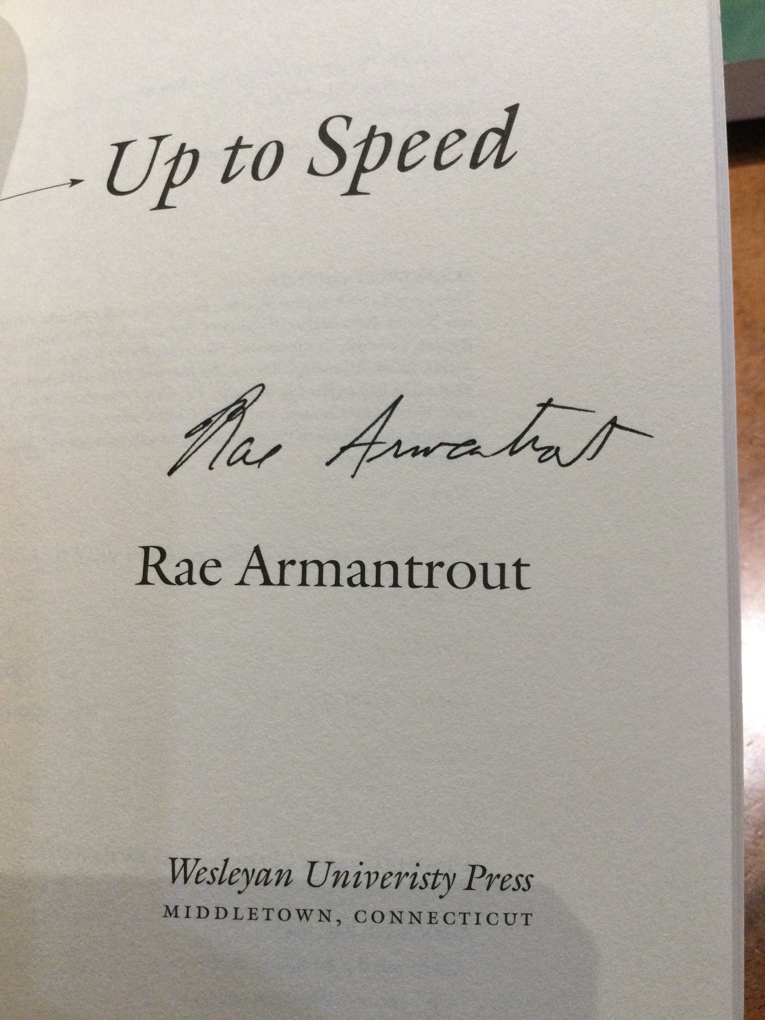 Up to Speed, by Rae Armantrout (used paperback, ISBN 0819566985, Wesleyan University, 2004)
