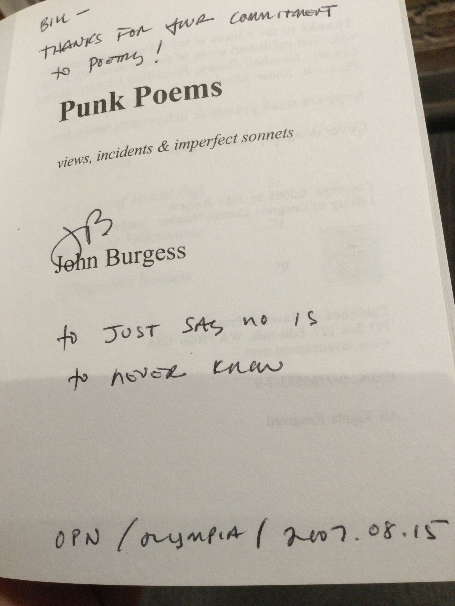 Punk Poems, by John Burgess (used paperback, ISBN 0976659379, Ravenna Press, 2005)