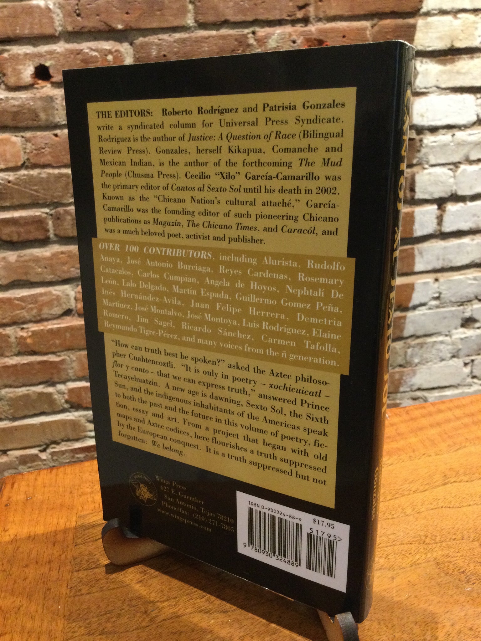 Cantos al Sexto Sol, eds. Cecilio Garcia-Camarillo, Roberto Rodriguez, and Patrisia Gonzales (used paperback, ISBN 0930324889, Wings Press, 2002)