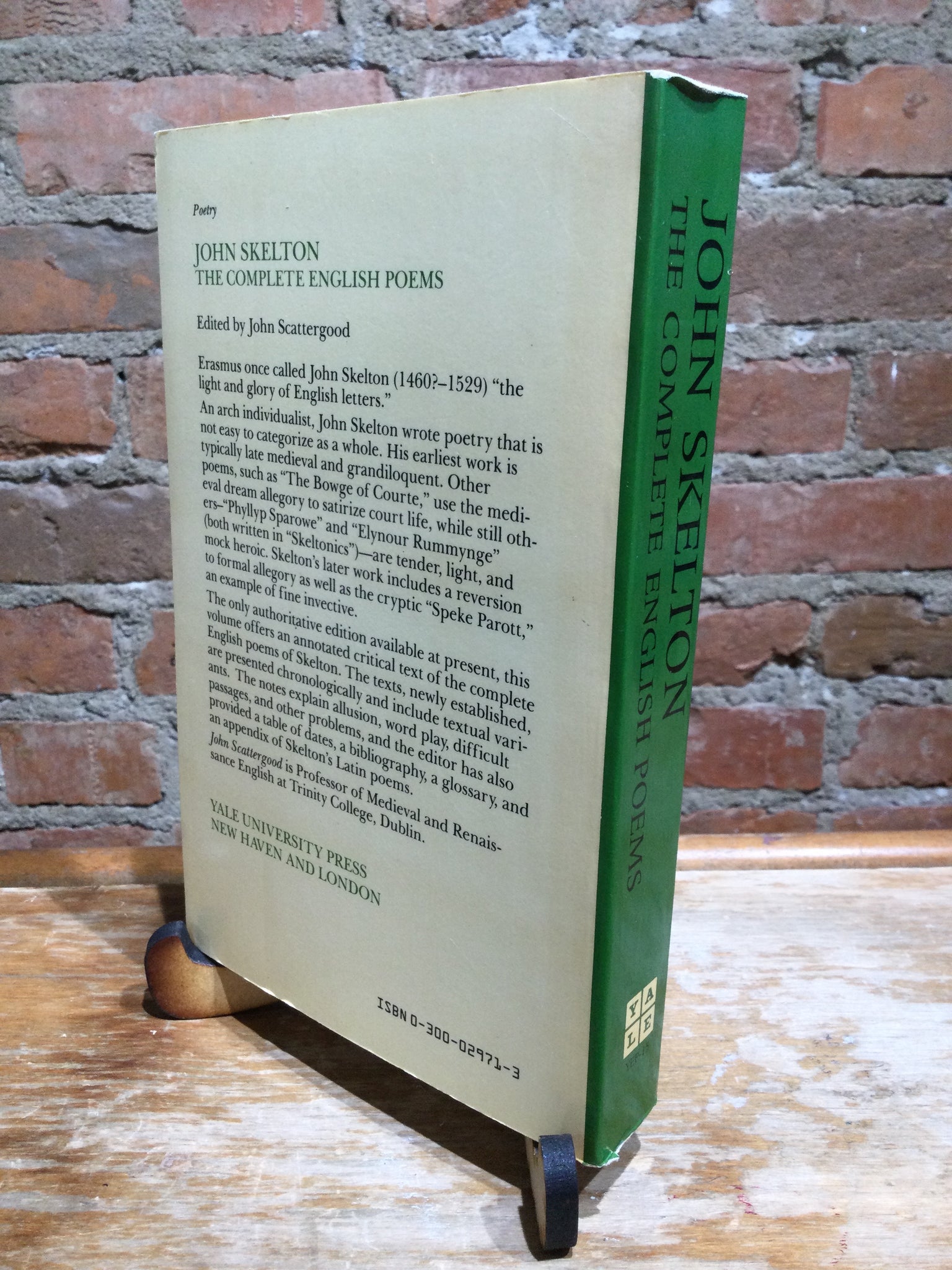 The Complete English Poems, by John Skeleton, Ed. John Scatter good (used paperback, ISBN 0300029713, Yale University, 1983)