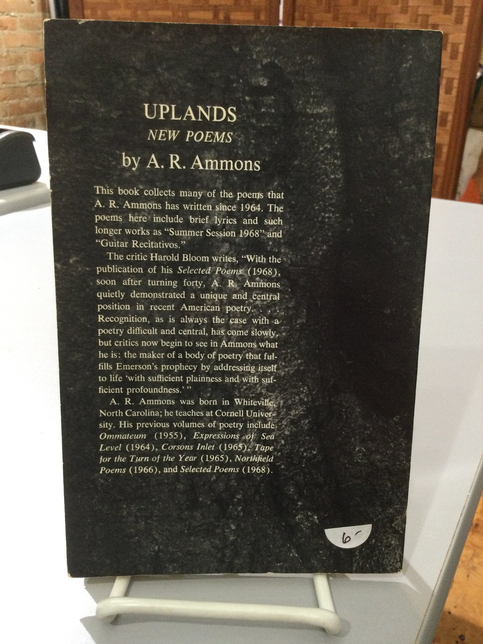 Uplands, by A. R. Ammons (used hardcover, ISBN 0393043304, W. W. Norton, 1970)