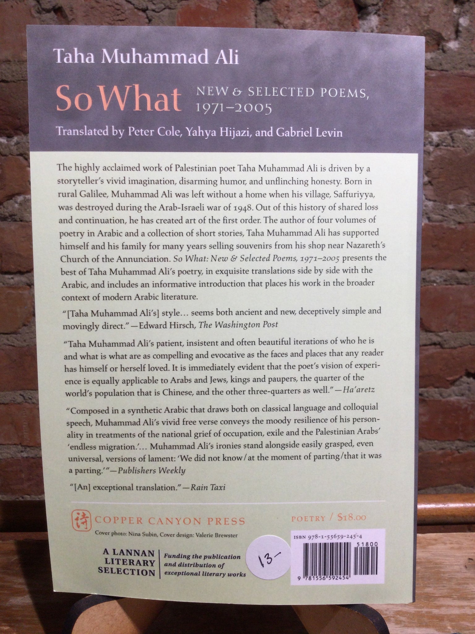 So What: New and Selected Poems 1971-2005, by Taha Muhammad Ali (used paperback, ISBN 9781556592454, Copper Canyon, 2006)