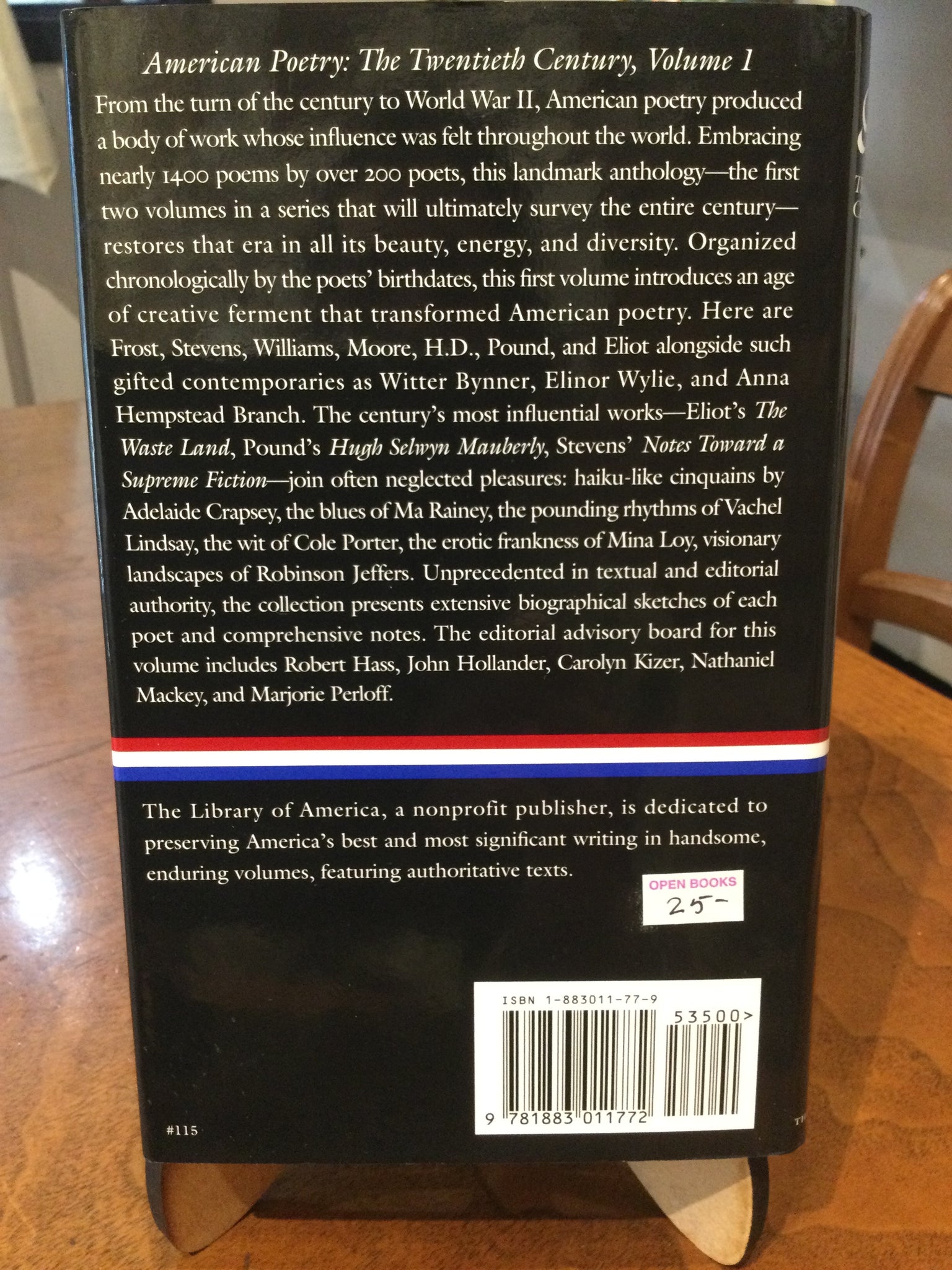 American Poetry: The Twentieth Century, Vol. 1 (used hardcover, ISBN 1883011779, Library of America, 2000)