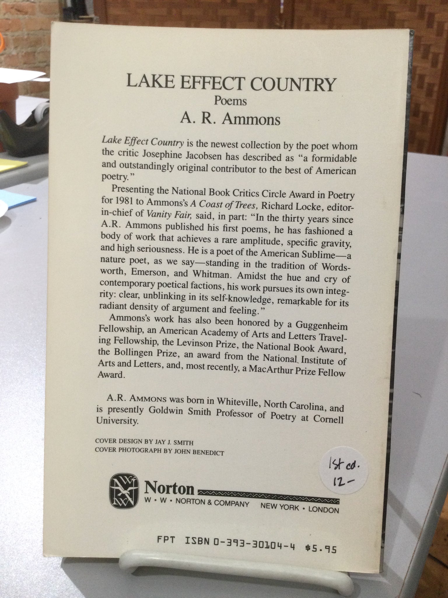 Lake Effect Country, by A. R. Ammons (used paperback, ISBN 0393301044, W. W. Norton, 1983)