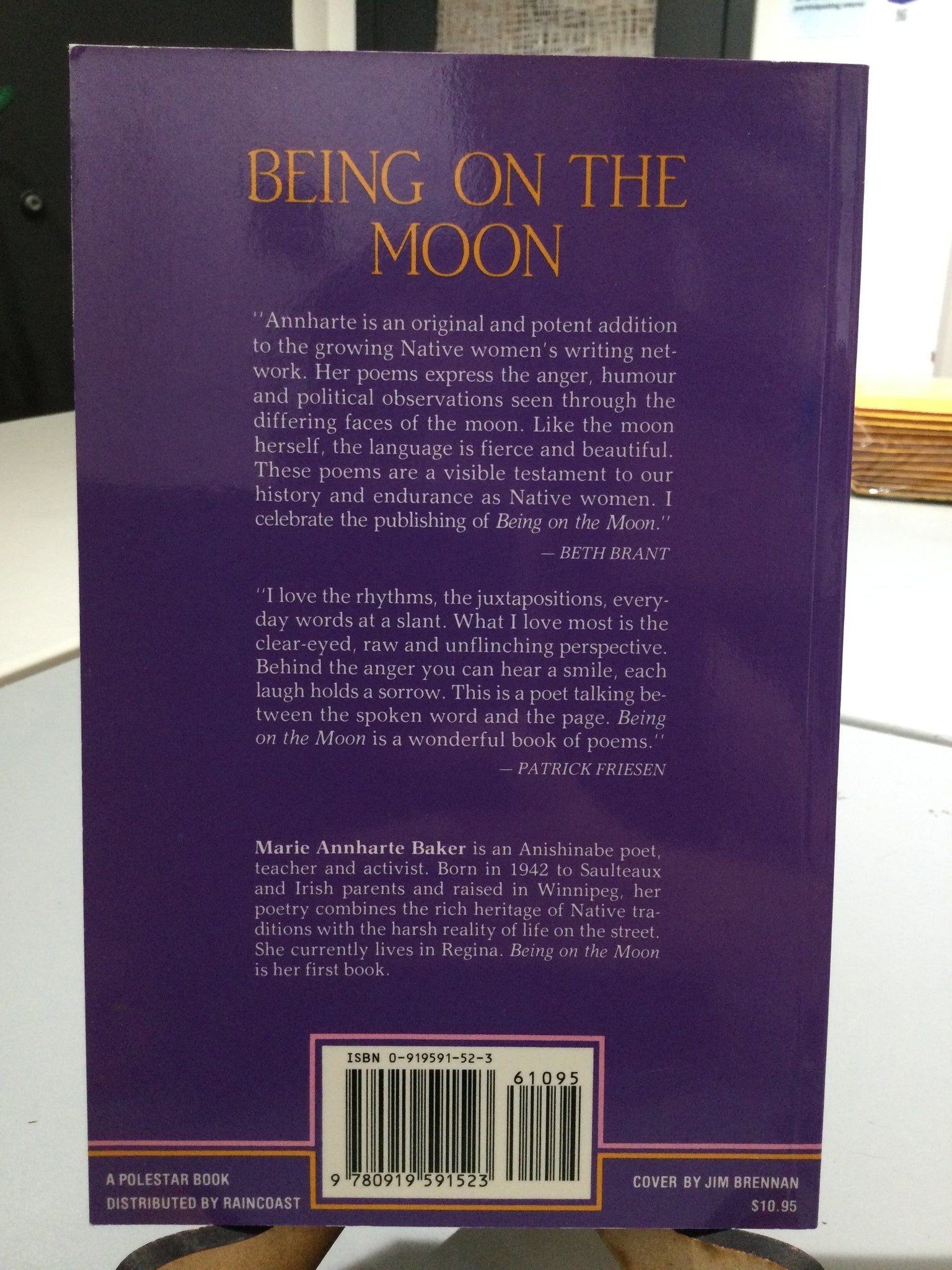 Being on the Moon, by Annharte (used paperback, ISBN 0919591523, Polestar Press, 1990)