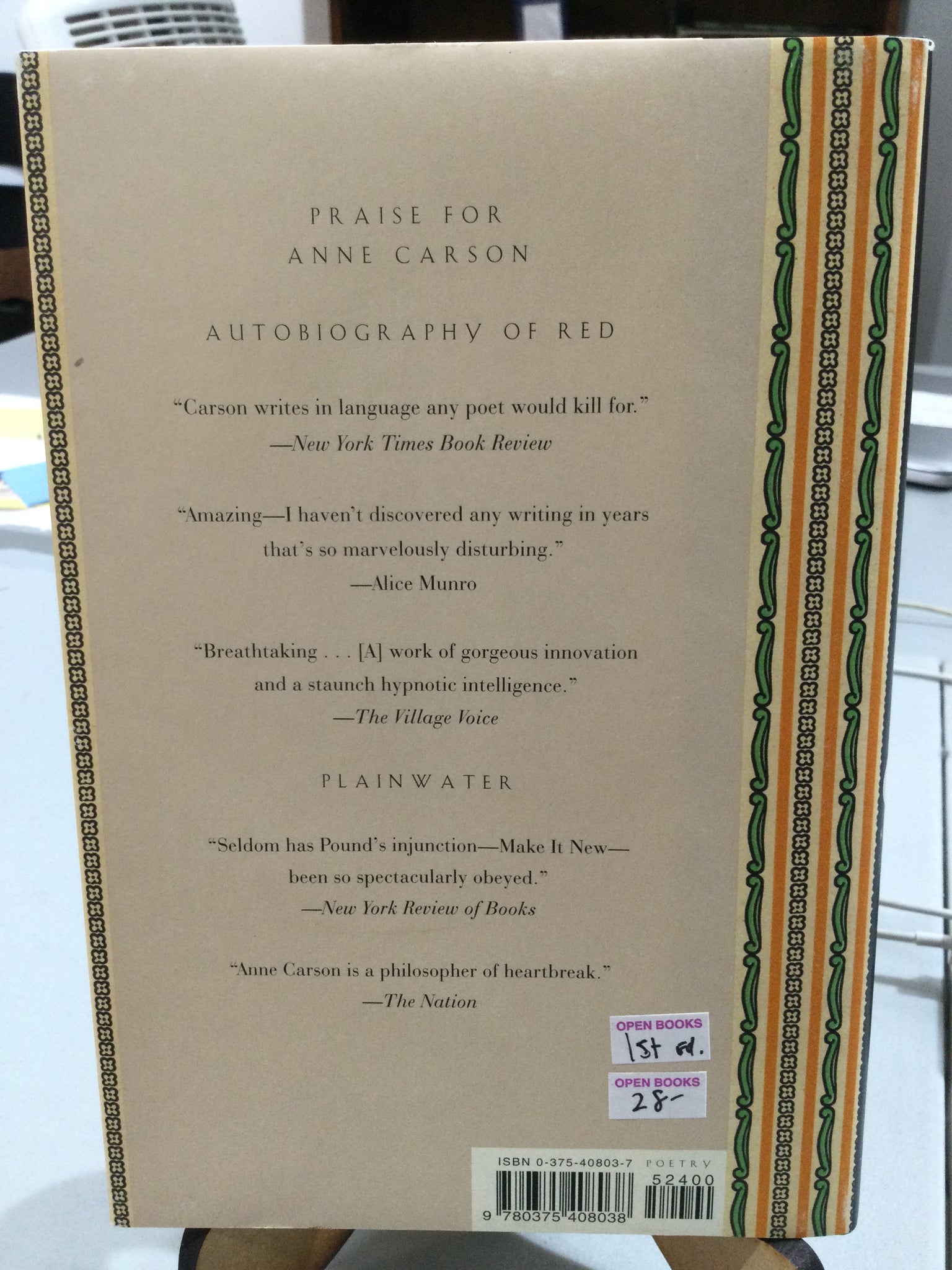 Men in the Off Hours, by Anne Carson (used hardcover, ISBN 0375408037, Knopf, 2000)
