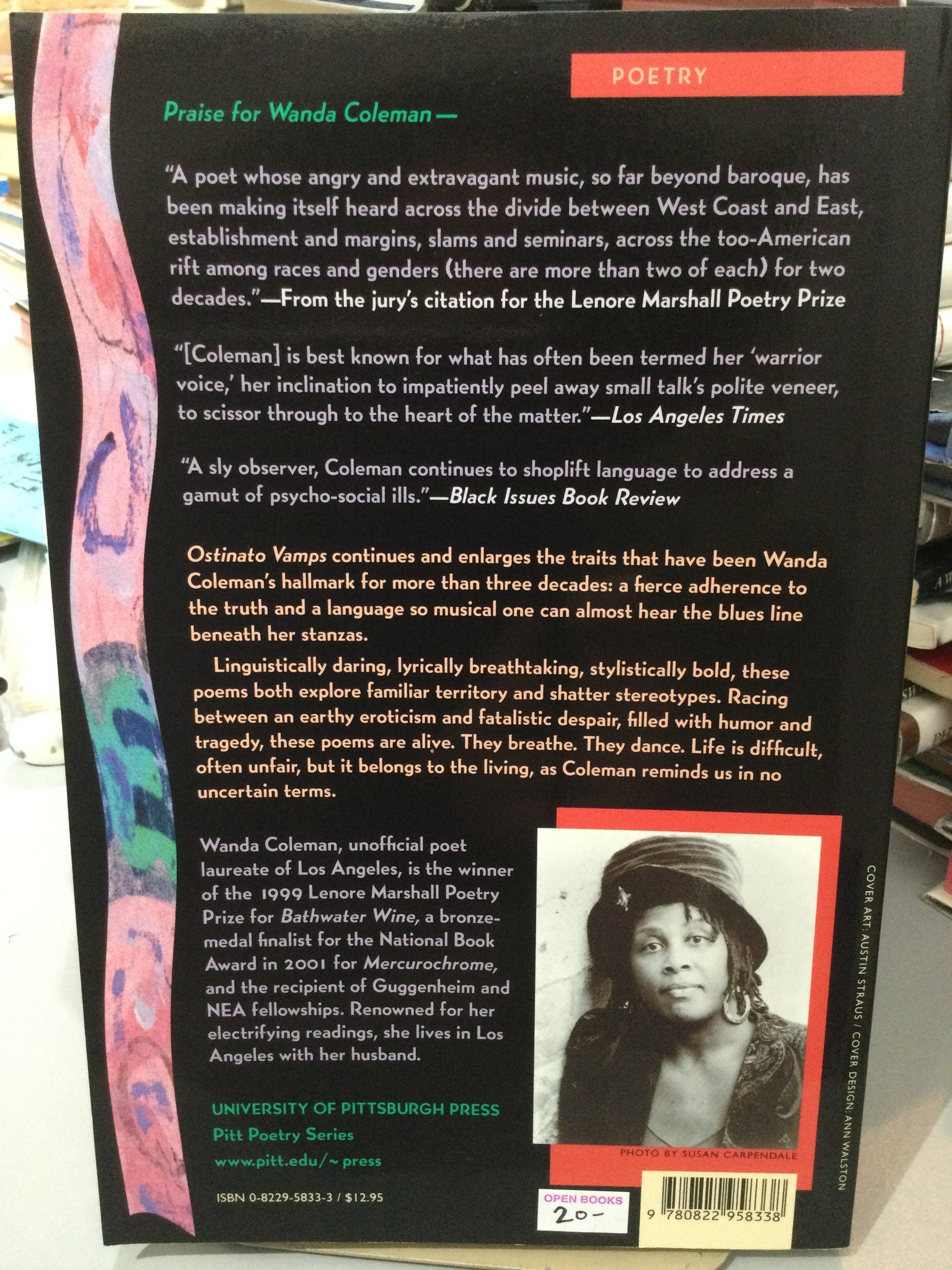Ostinato Vamps, by Wanda Coleman (used paperback, ISBN 0822958333, University of Pittsburgh Press, 2003)