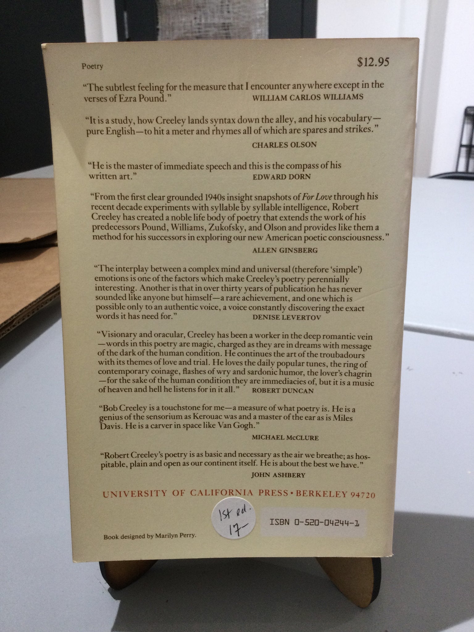 The Collected Poems of Robert Creeley 1945-1975, by Robert Creeley (used paperback, ISBN 0520042441, University of California Press, 1985)