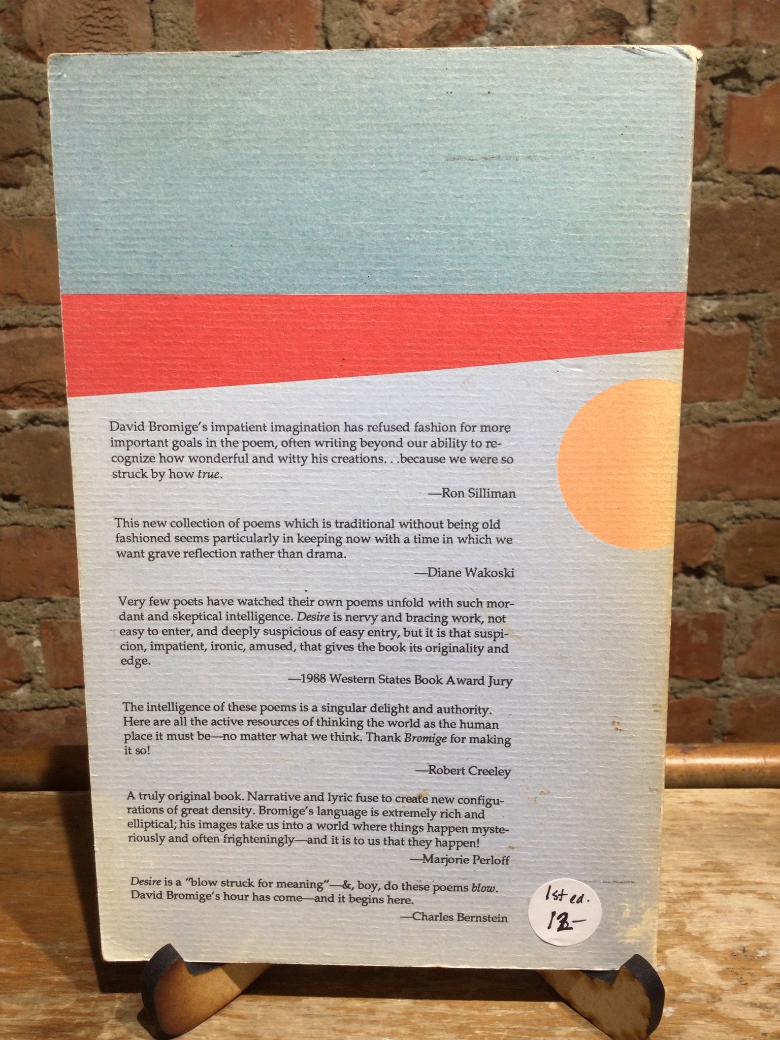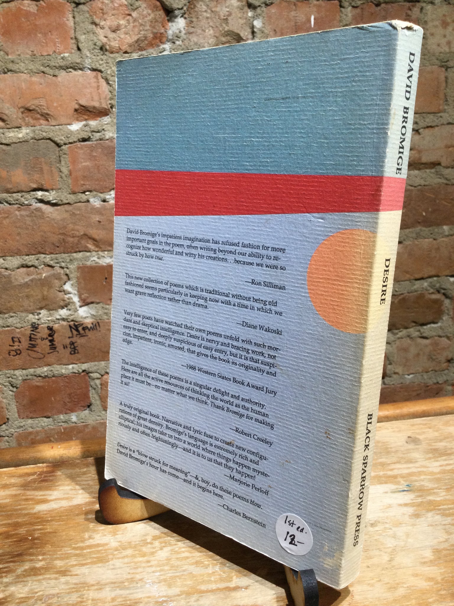 Desire: Selected Poems 1963-1987, by David Bromige (used paperback, ISBN 0876857233, Black Sparrow, 1988)
