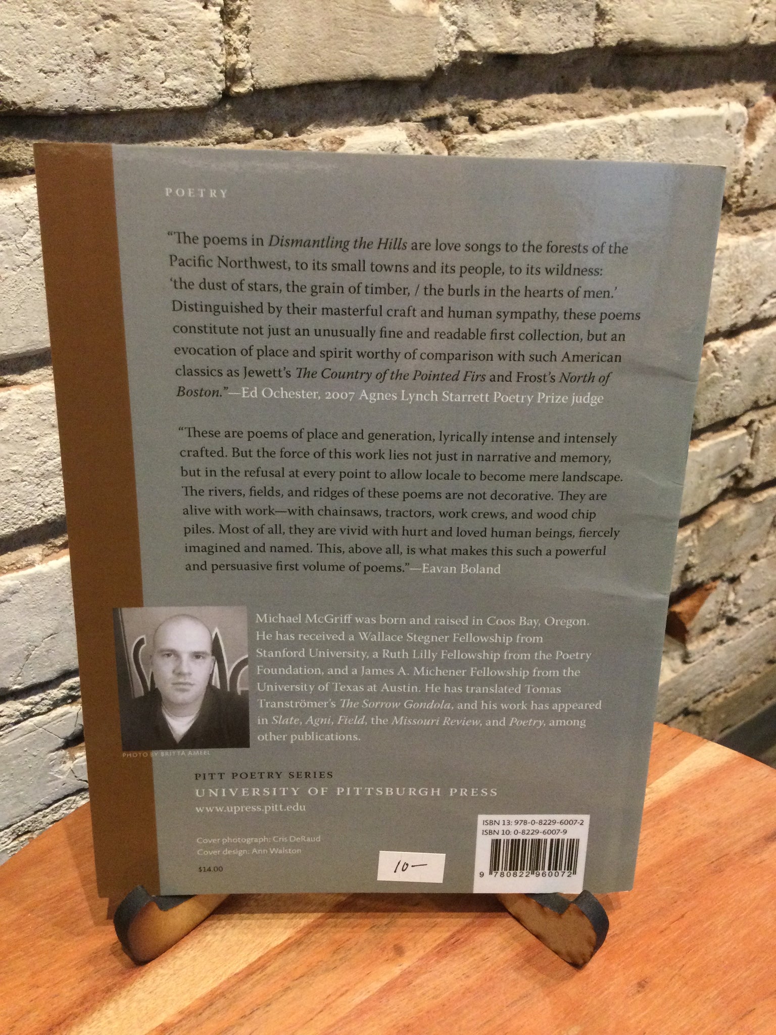 Dismantling the Hills, by Michael McGriff (used paperback, ISBN 9780822960072, University of Pittsburgh, 2008)