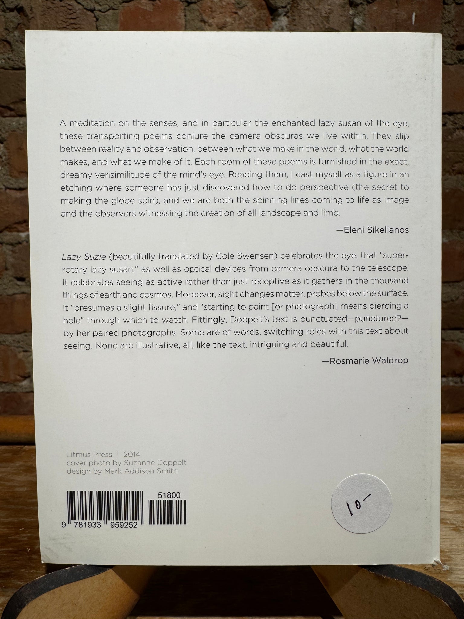 Lazy Suzie by Suzanne Doppelt, translated by Cole Swensen (used paperback, ISBN 9781933959252, Litmus Press, 2014)