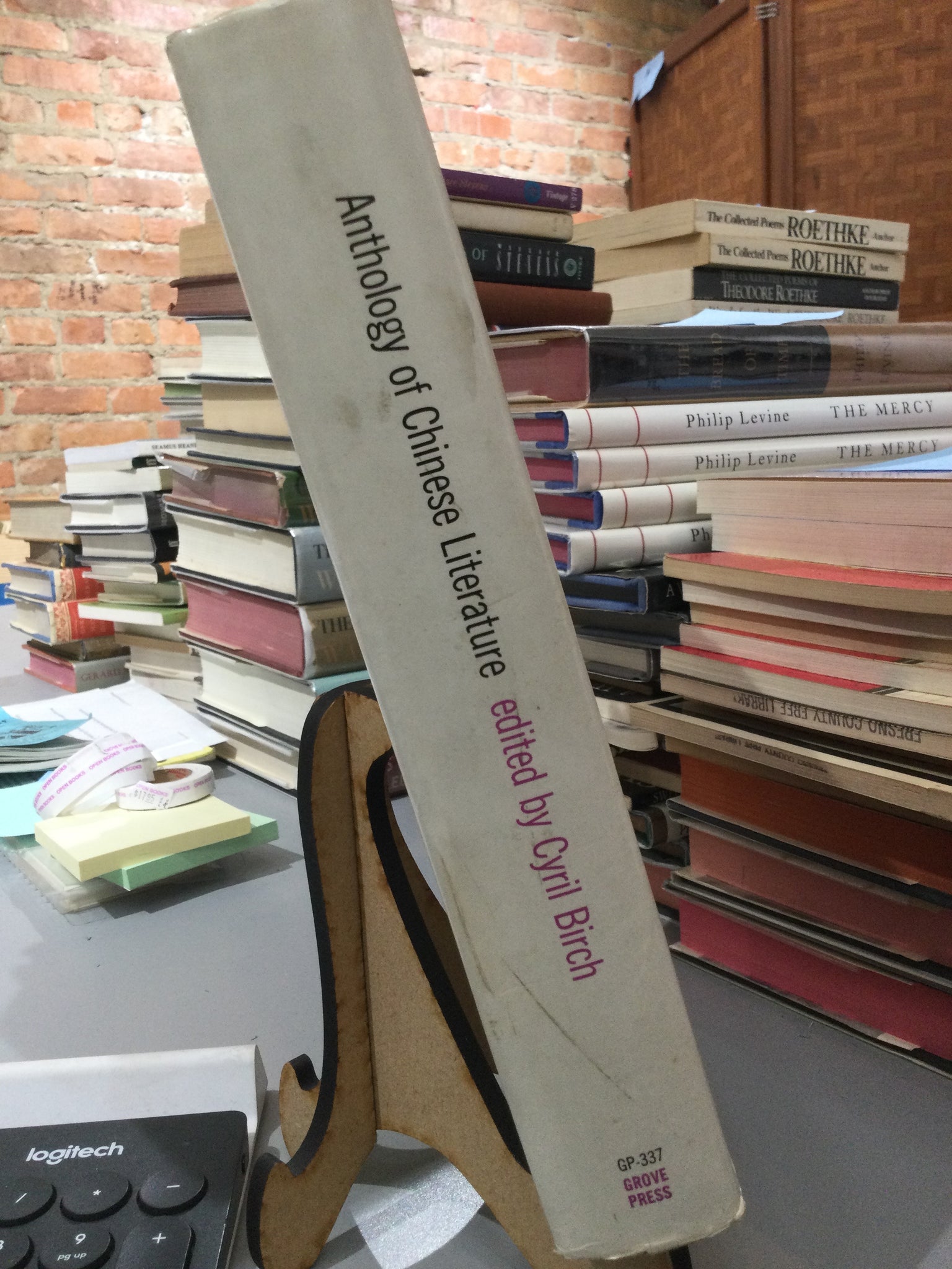 Anthology of Chinese Literature: From Early Times to the Fourteenth Century, ed. Cyril Birch (used hardcover, Grove Press, 1965)