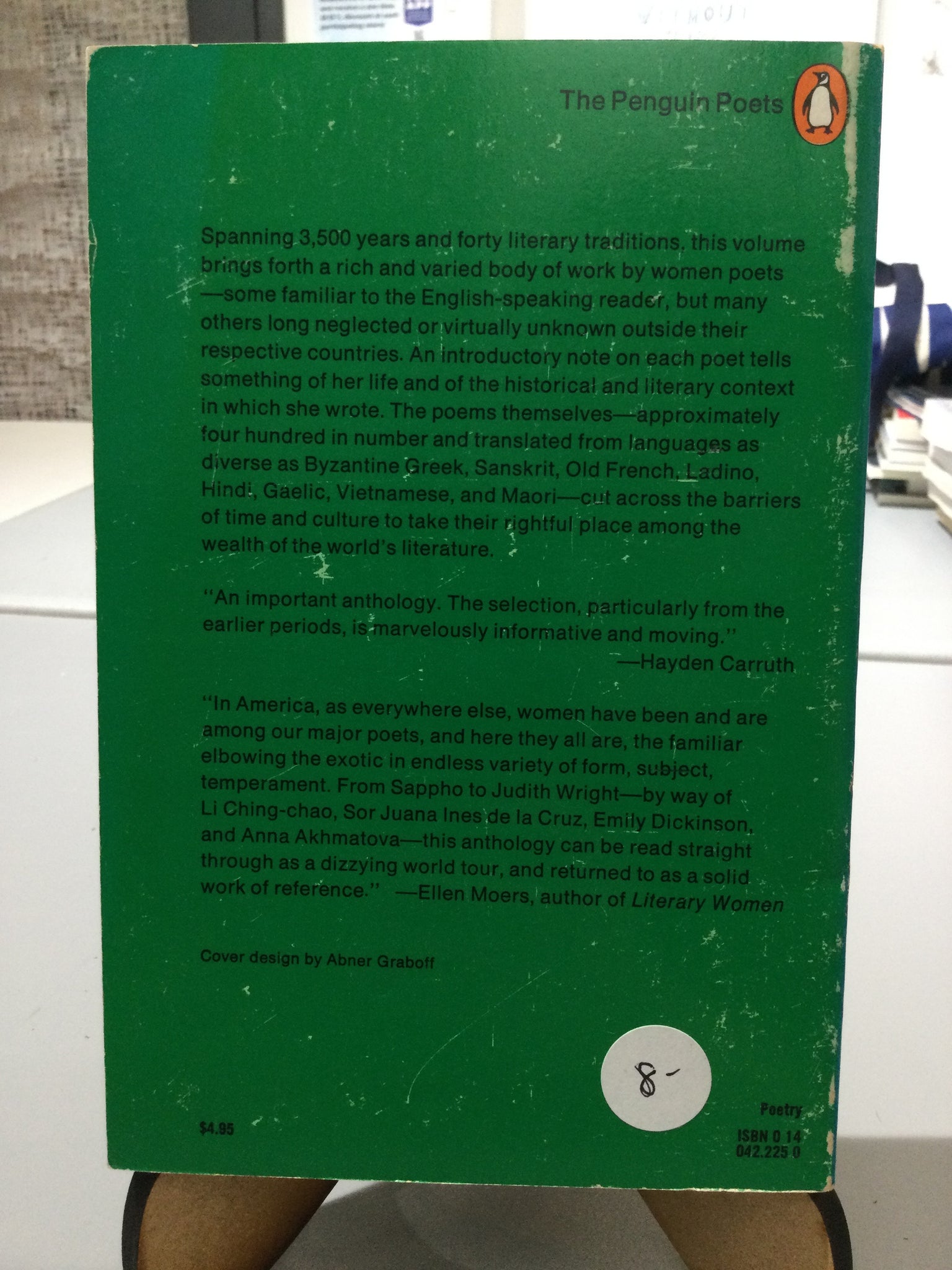 The Penguin Book of Women Poets, edited by Carol Cosman, Joan Keefe, and Kathleen Weaver (used paperback, ISBN 0140422250, Penguin Books, 1978)
