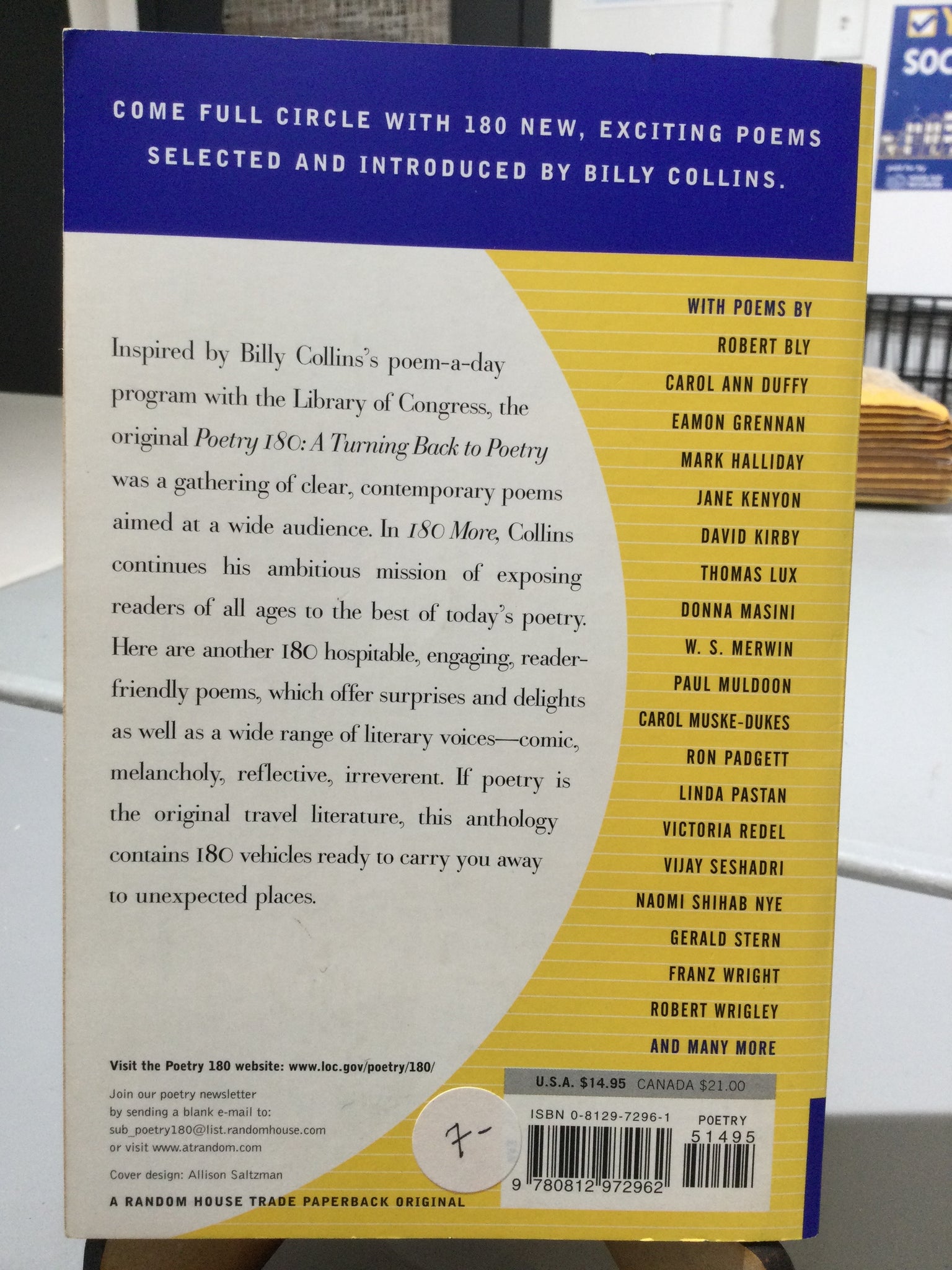 180 More Extraordinary Poems for Every Day, selected by Billy Collins (used paperback, ISBN 0812972961, Random House, 2005)