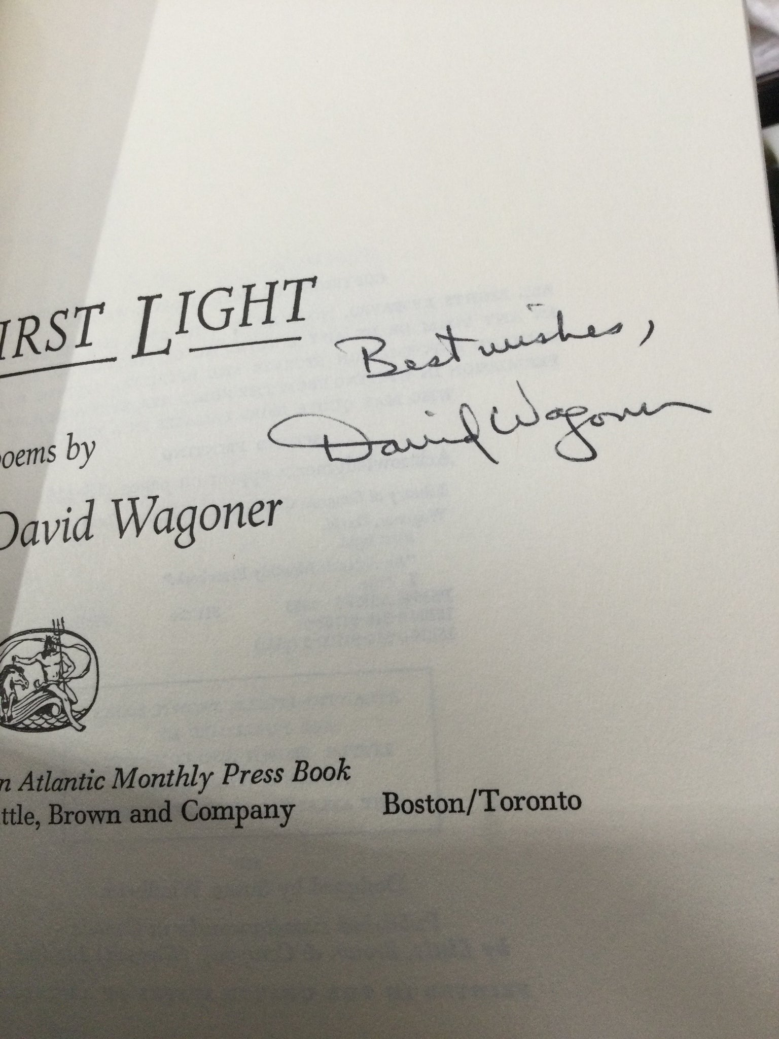 First Light, by David Wagoner (used paperback, ISBN 0316917095, Atlantic-Little Brown, 1983)
