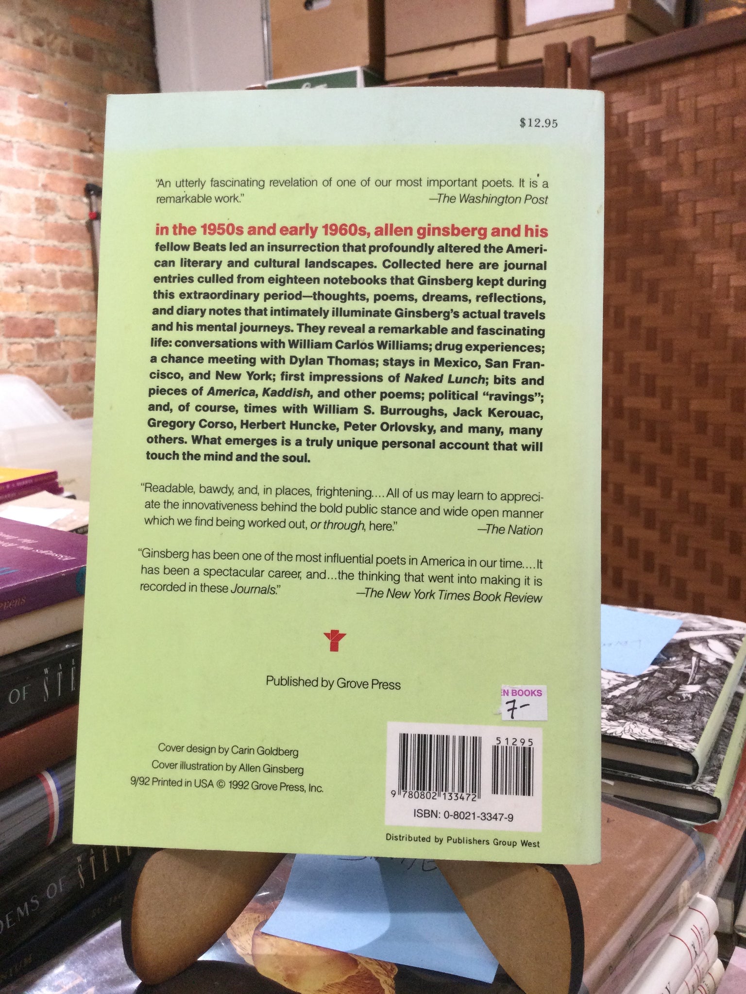 Journals: early fifties, early sixties, by Allen Ginsberg, ed. Gordon Ball [used paperback, ISBN 0802133479, Grove Press, 1992)