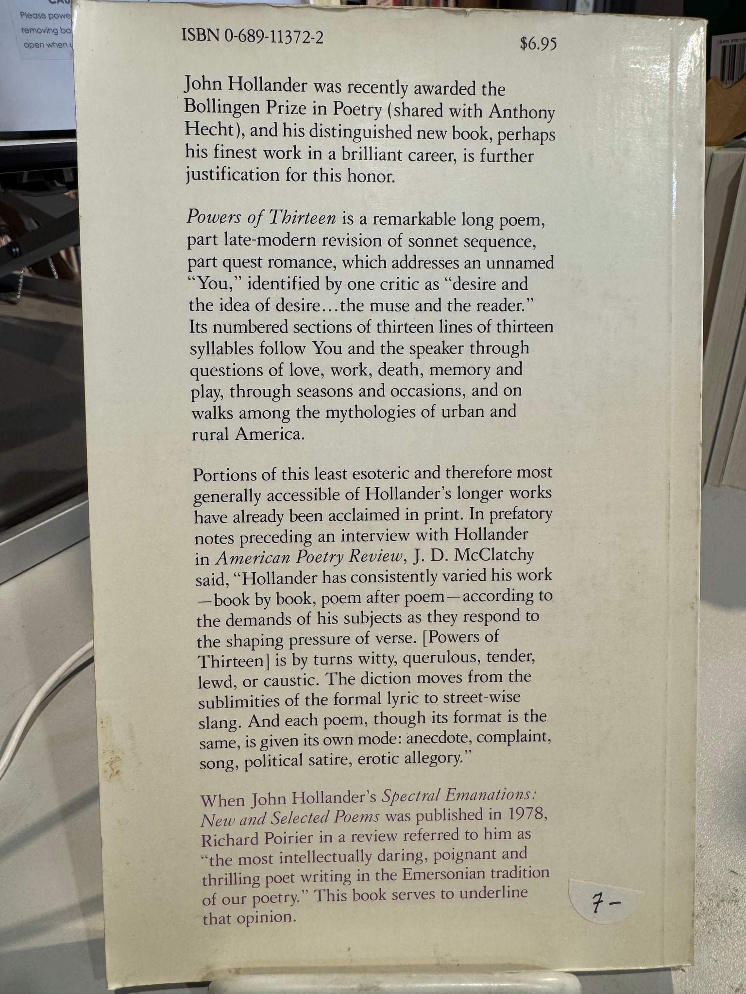 Powers of Thirteen by John Hollander (used paperback, ISBN 0689113722, Atheneum, 1983)