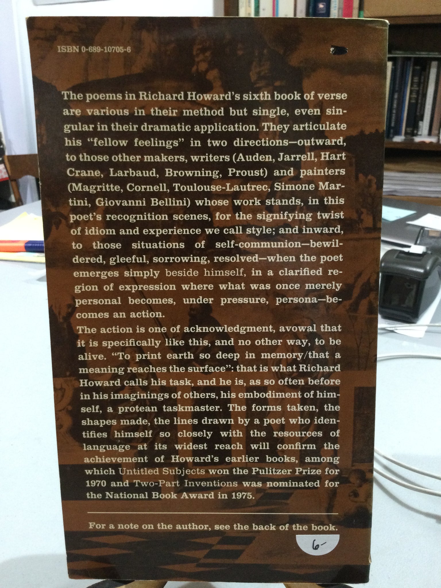 Fellow Feelings, by Richard Howard (used paperback, ISBN 0689107056, Atheneum, 1976)