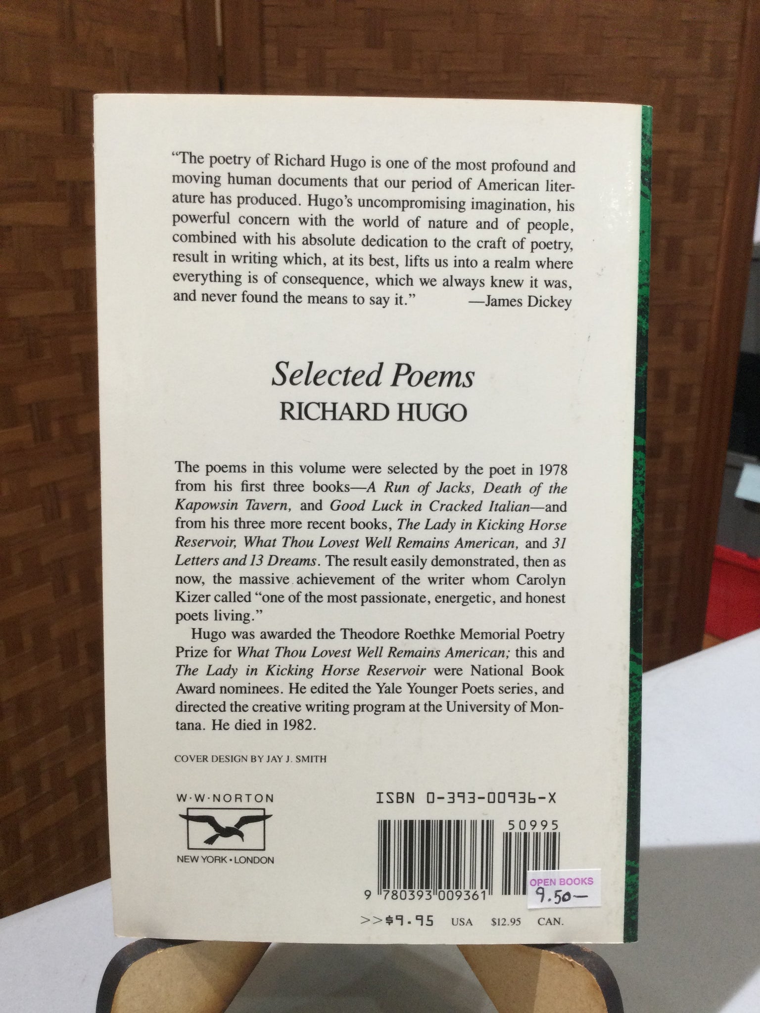 Selected Poems, by Richard Hugo (used paperback, W.W. Norton, 1979)