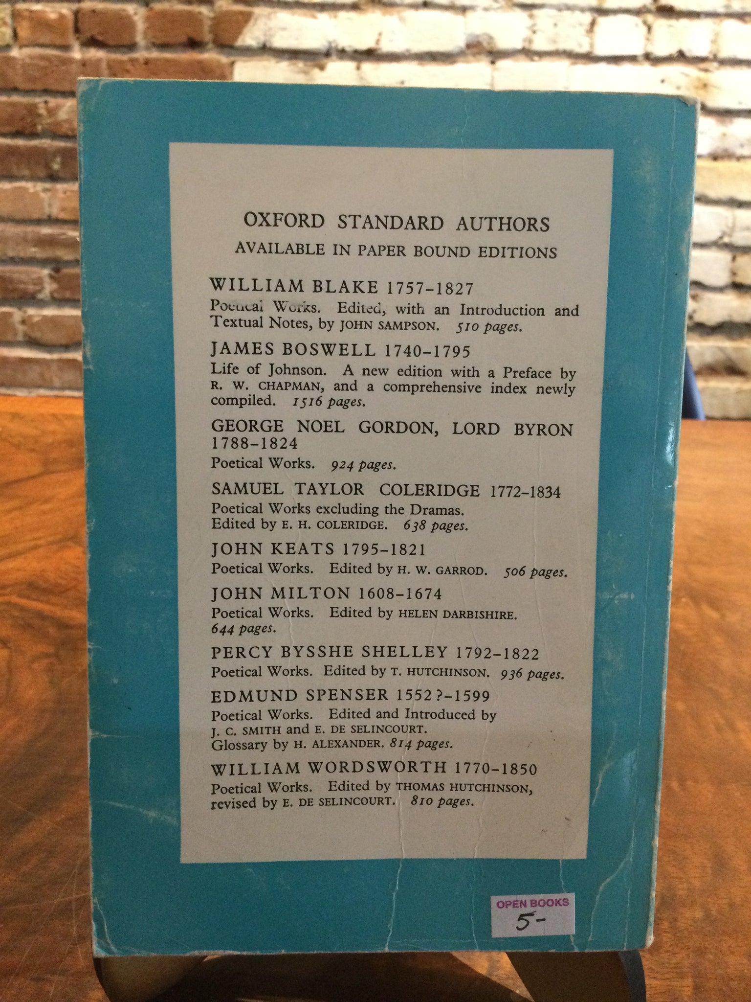 Poetical Works of Wordsworth, edited by Thomas Hutchinson (used paperback, Oxford University Press, 1964)