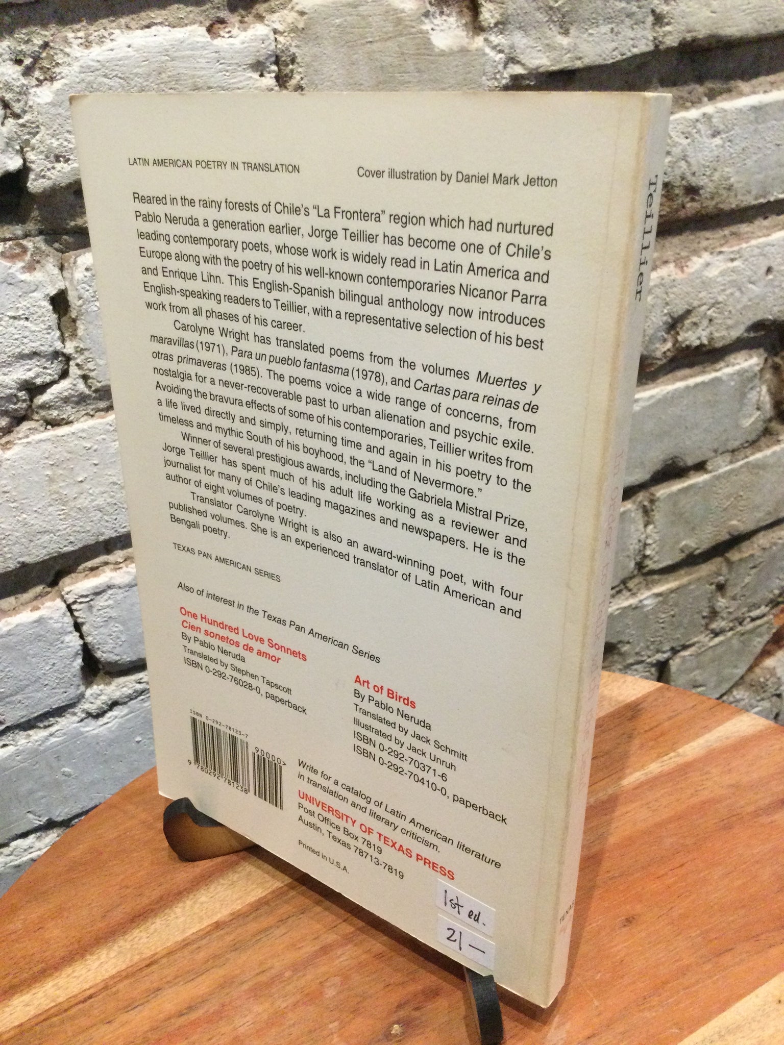 In Order to Talk with the Dead, by Jorge Teillier (used paperback, ISBN 0292781237, University of Texas Press, 1993)