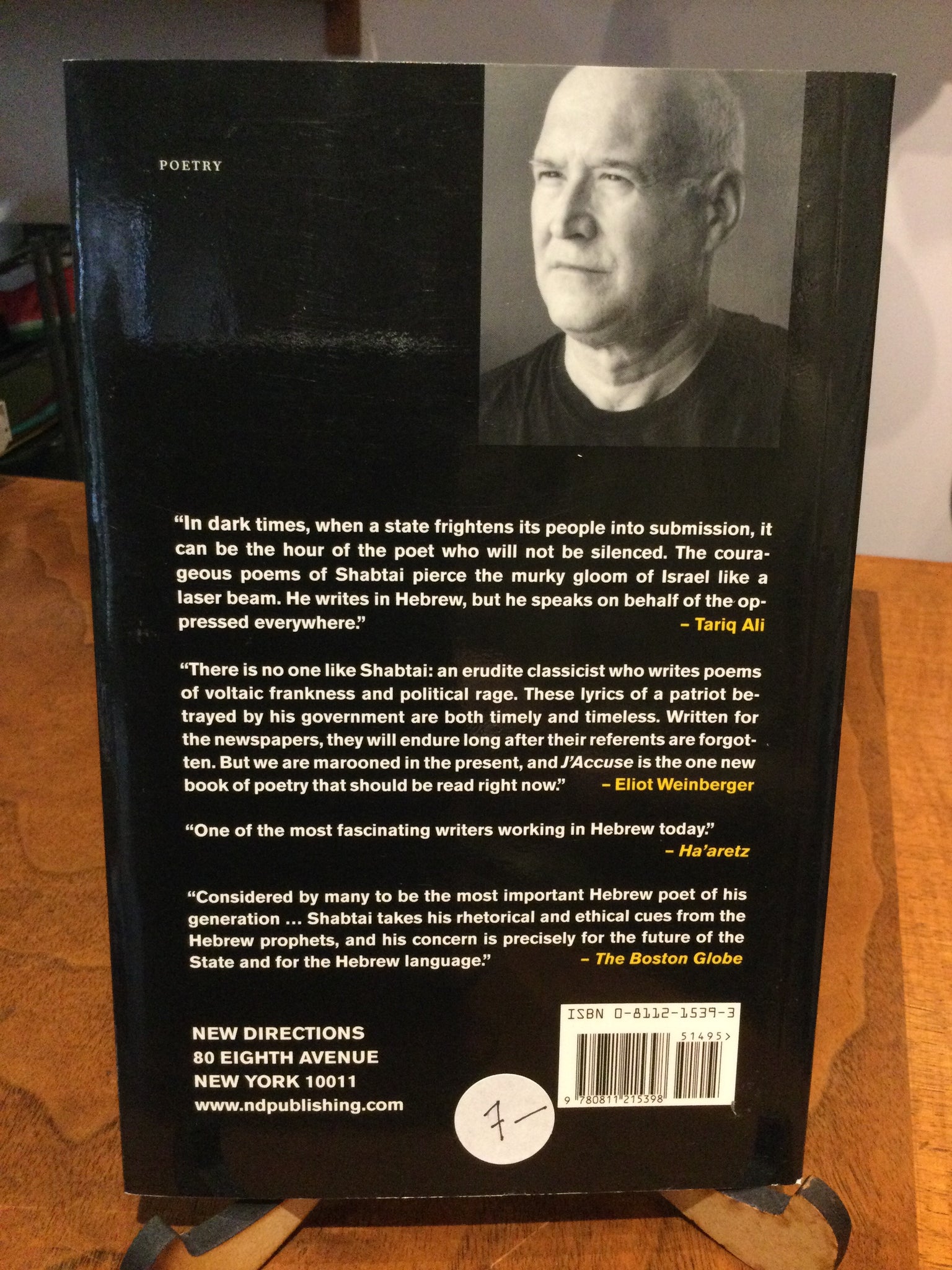 J'Accuse, by Aharon Shabtai (used paperback, ISBN 0811215393, New Directions, 2003)