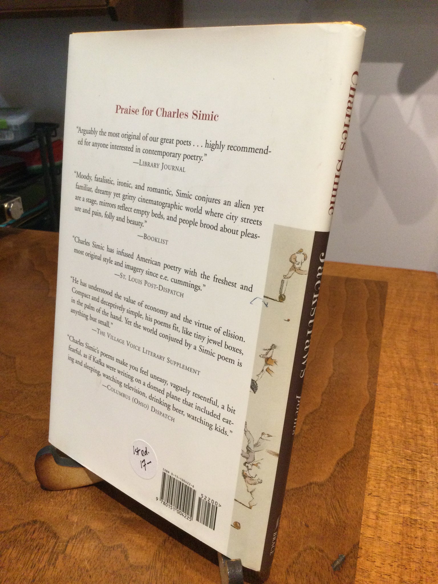 Jackstraws, by Charles Simic (used hardcover, ISBN 0151004226, Harcourt Brace, 1999)