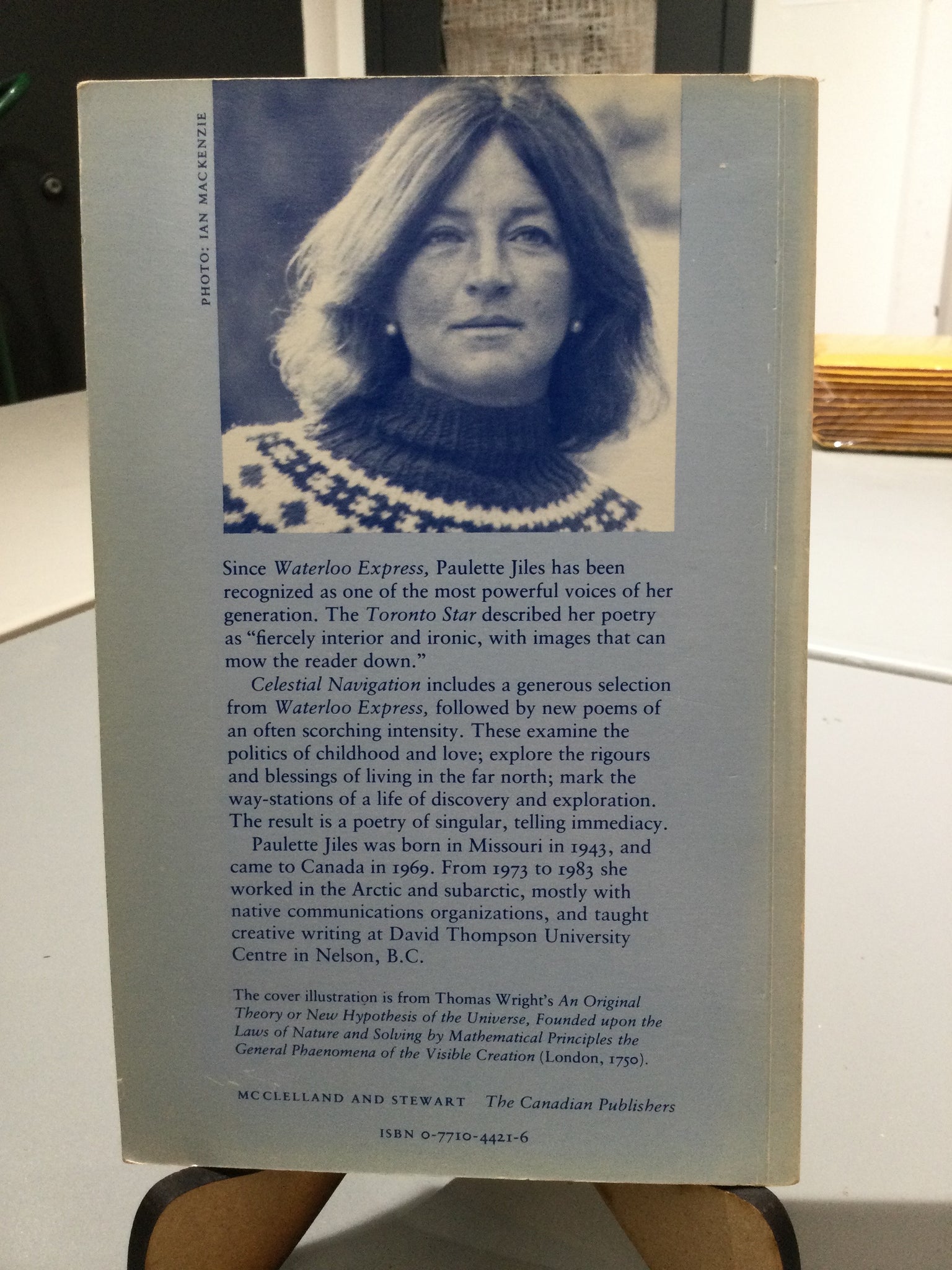 Celestial Navigation, by Paulette Jiles (used paperback, ISBN 0771044216, McClelland & Stewart, 1986)