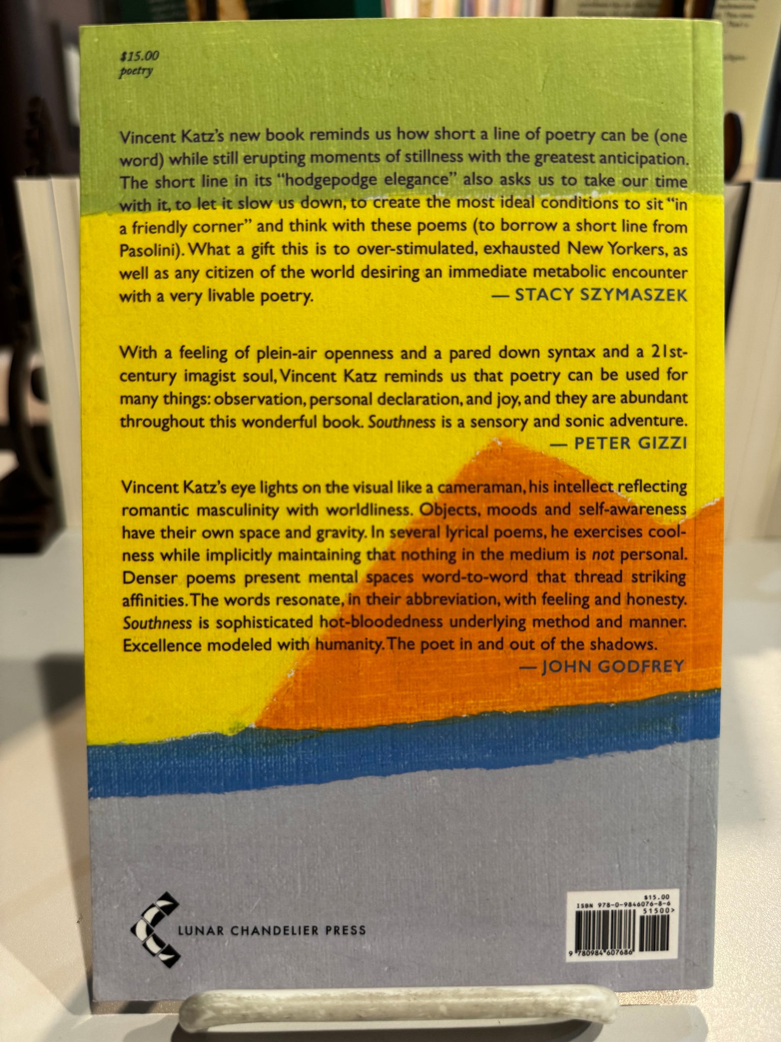 Southness by Vincent Katz (used paperback, ISBN 9780984607686, Lunar Chandelier Press, 2016)