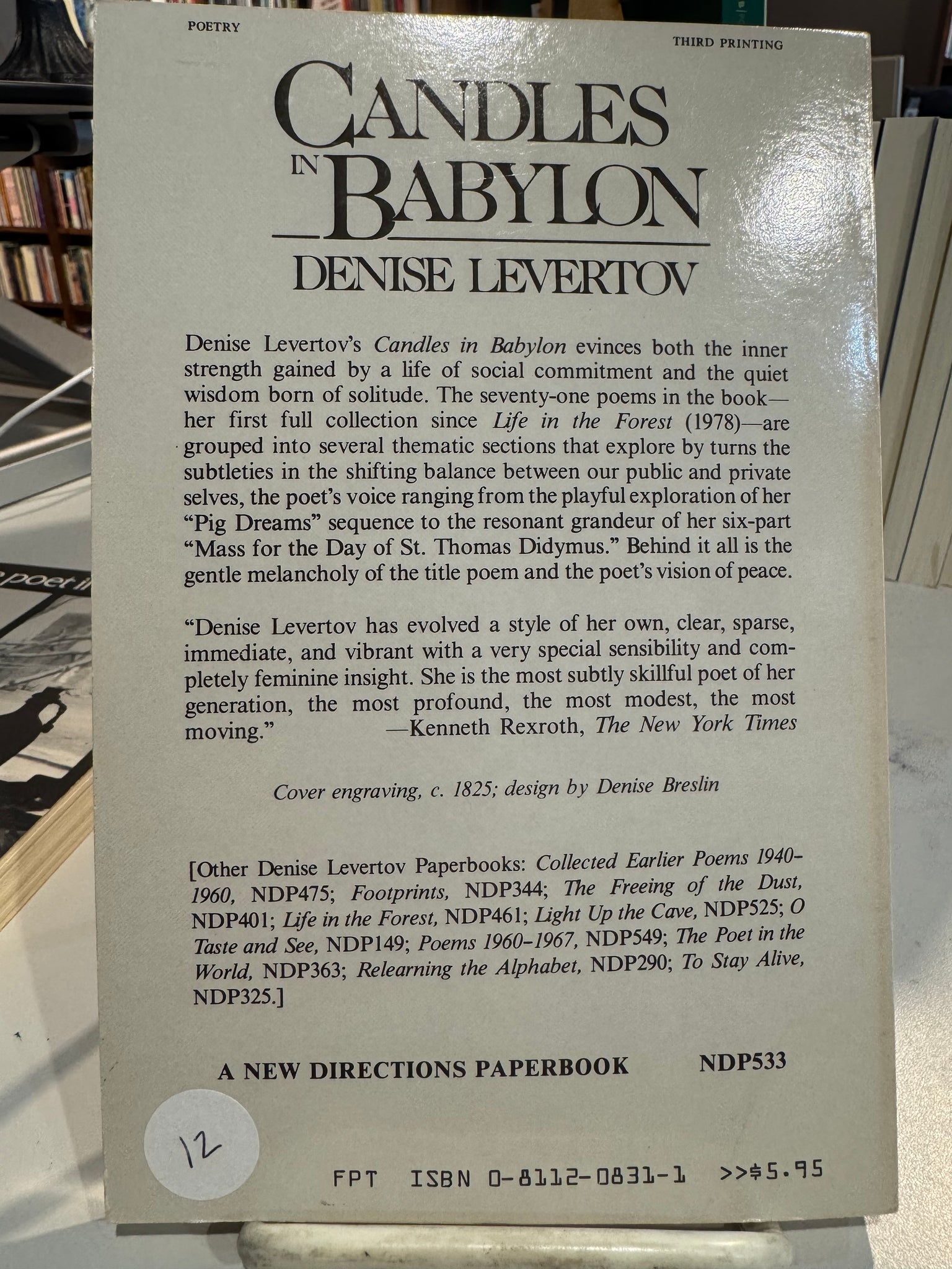 Candles in Babylon by Denise Levertov (used paperback, ISBN 0811208311, New Directions, 1982)