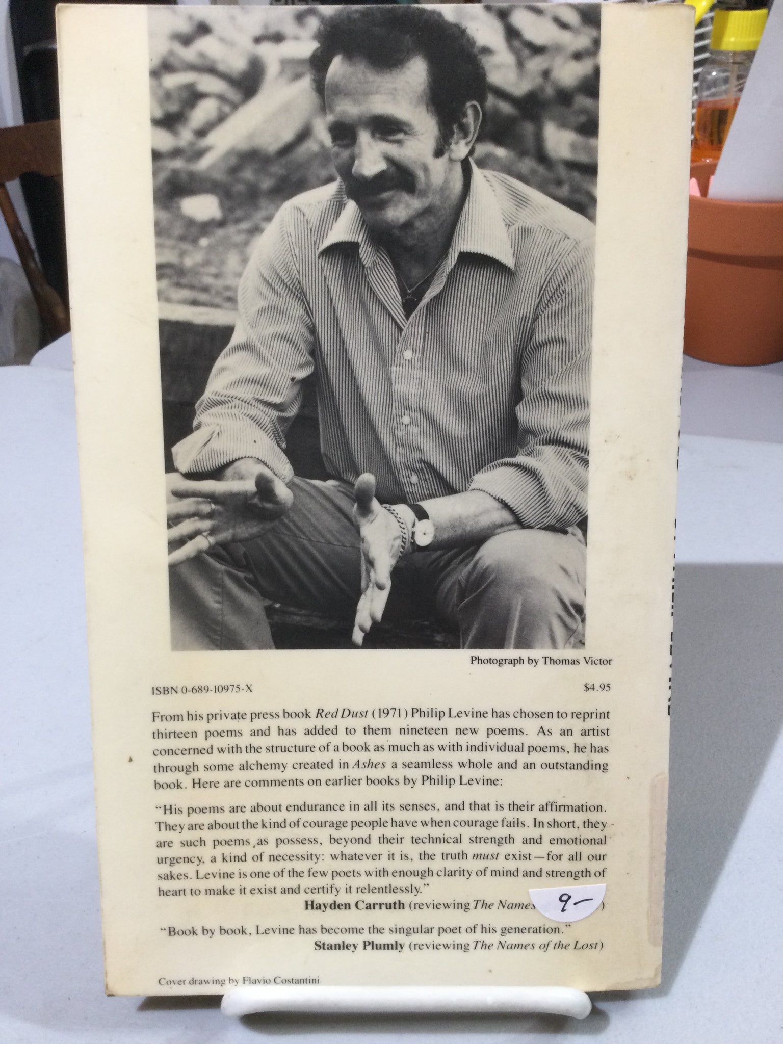 Ashes: Poems New and Old, by Philip Levine (used paperback, ISBN 068910975X, Atheneum, 1980)