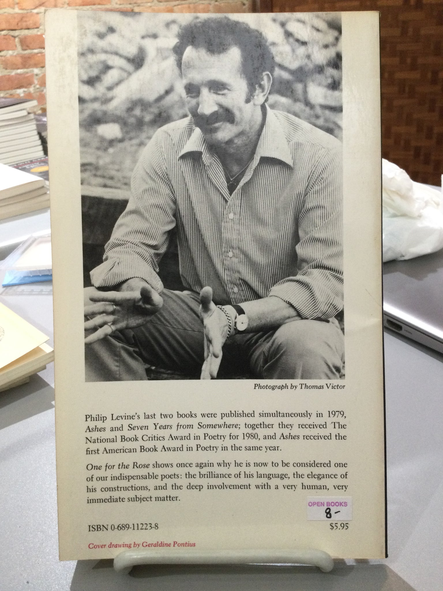 One for the Rose, by Philip Levine (used paperback, ISBN 0689112238, Atheneum, 1981)