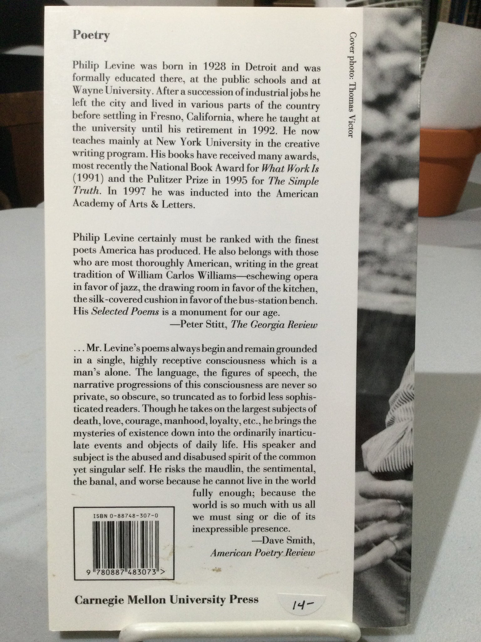 One for the Rose, by Philip Levine (used paperback, ISBN 0887483070, Carnegie Mellon University Press, 1999.
