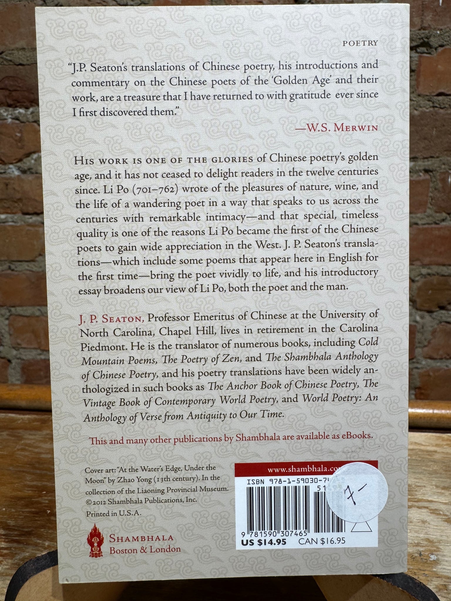 Bright Moon, White Clouds by Li Po, translated by J. P. Seaton (used paperback, ISBN 9781590307465, Shambhala, 2012)