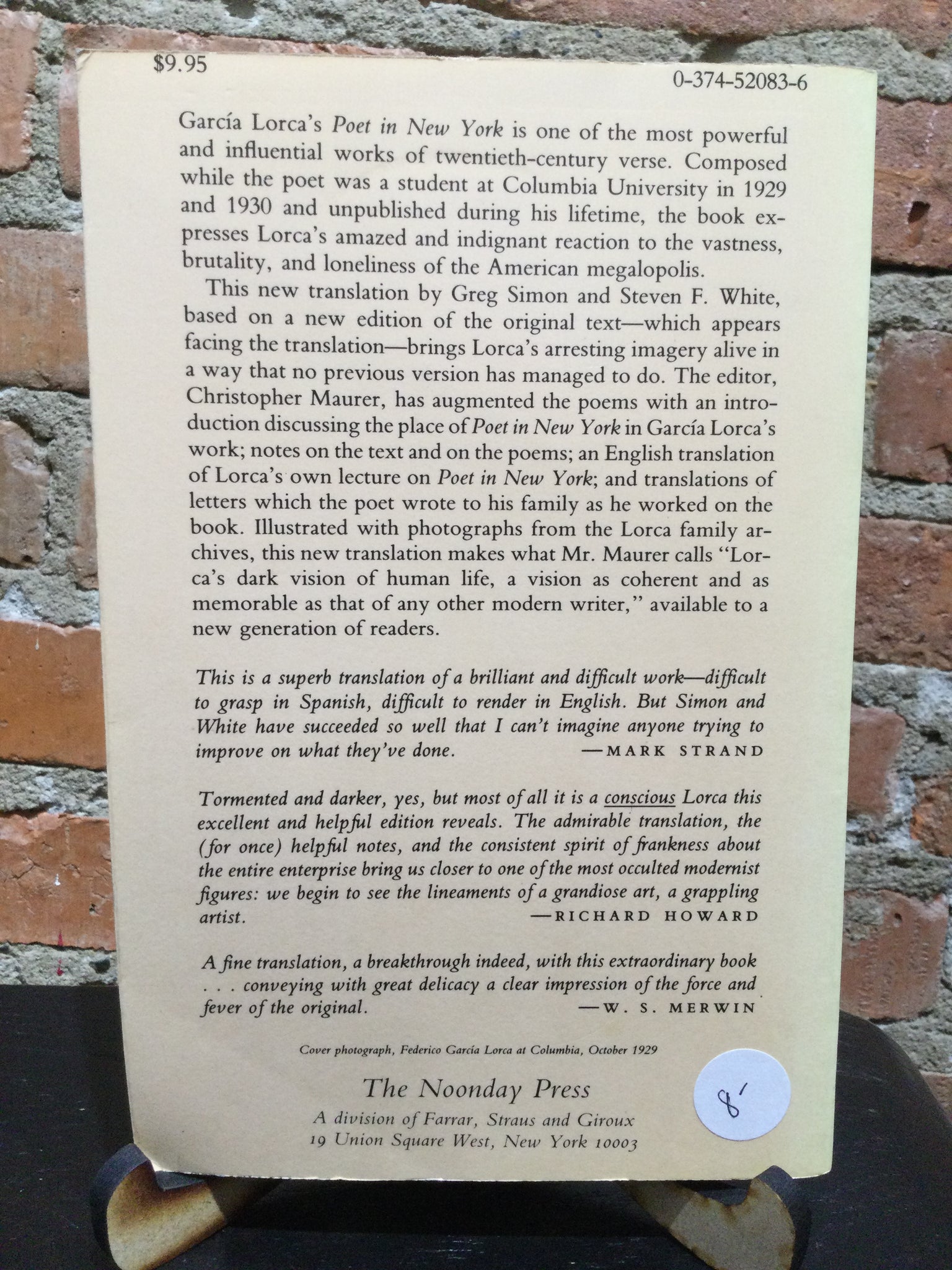 Poet in New York by Federico Garcia Lorca, translated by Greg Simon and Steven F. White (used paperback, Noonday Press, 1989)