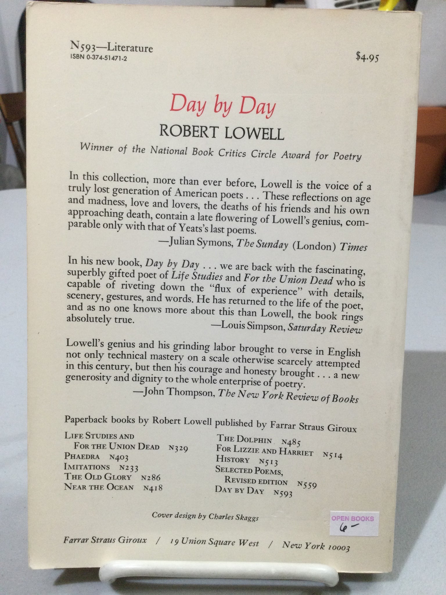 Day by Day, by Robert Lowell (used paperback, Farrar Straus Giroux, 1978)