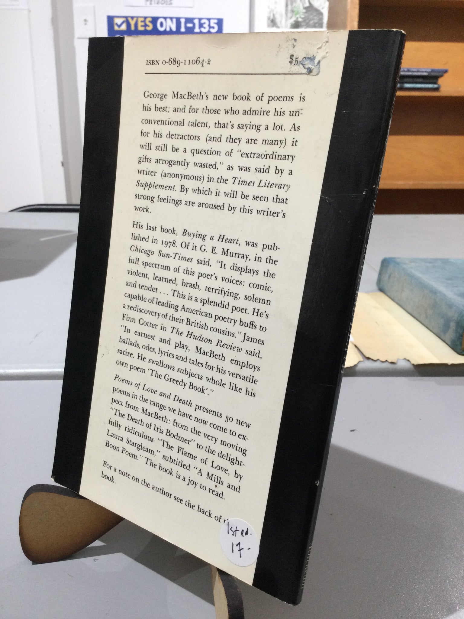 Poems of Love and Death, by George MacBeth (used paperback, ISBN 0689110642, Atheneum, 1980)