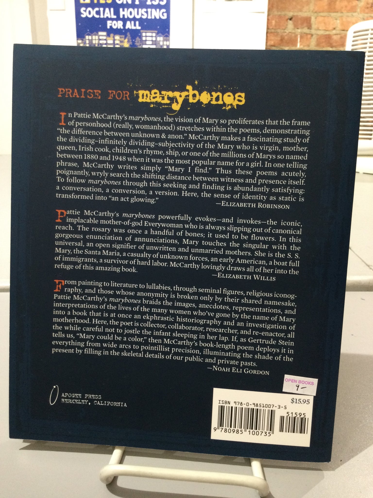 Marybones, by Pattie McCarthy (used paperback, ISBN 9780985100735, Apogee Press, 2012)