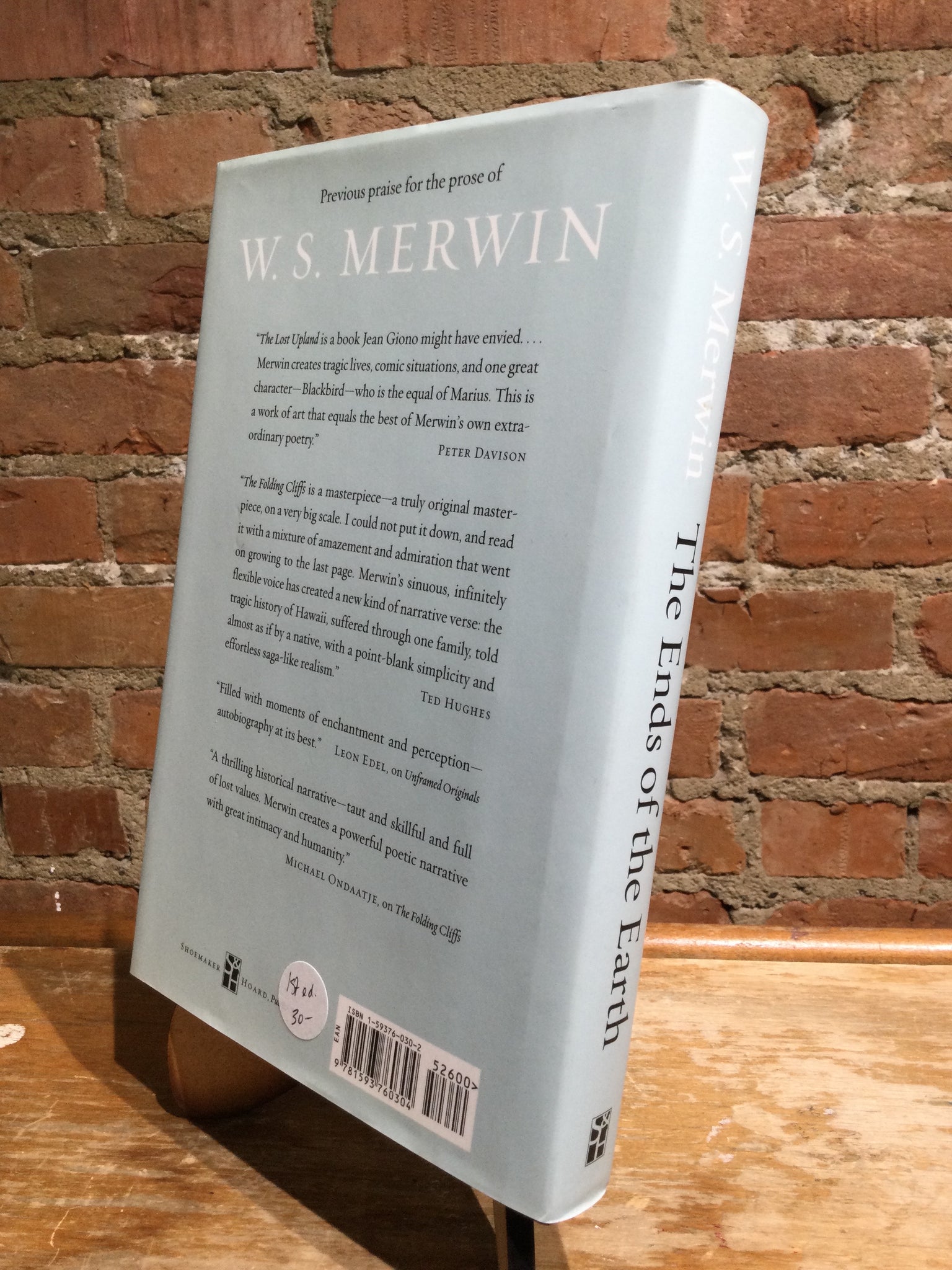 The Ends of the Earth Essays, by W.S. Merwin (used hardcover, ISBN 1593760302, Shoemaker & Hoard, 2004)