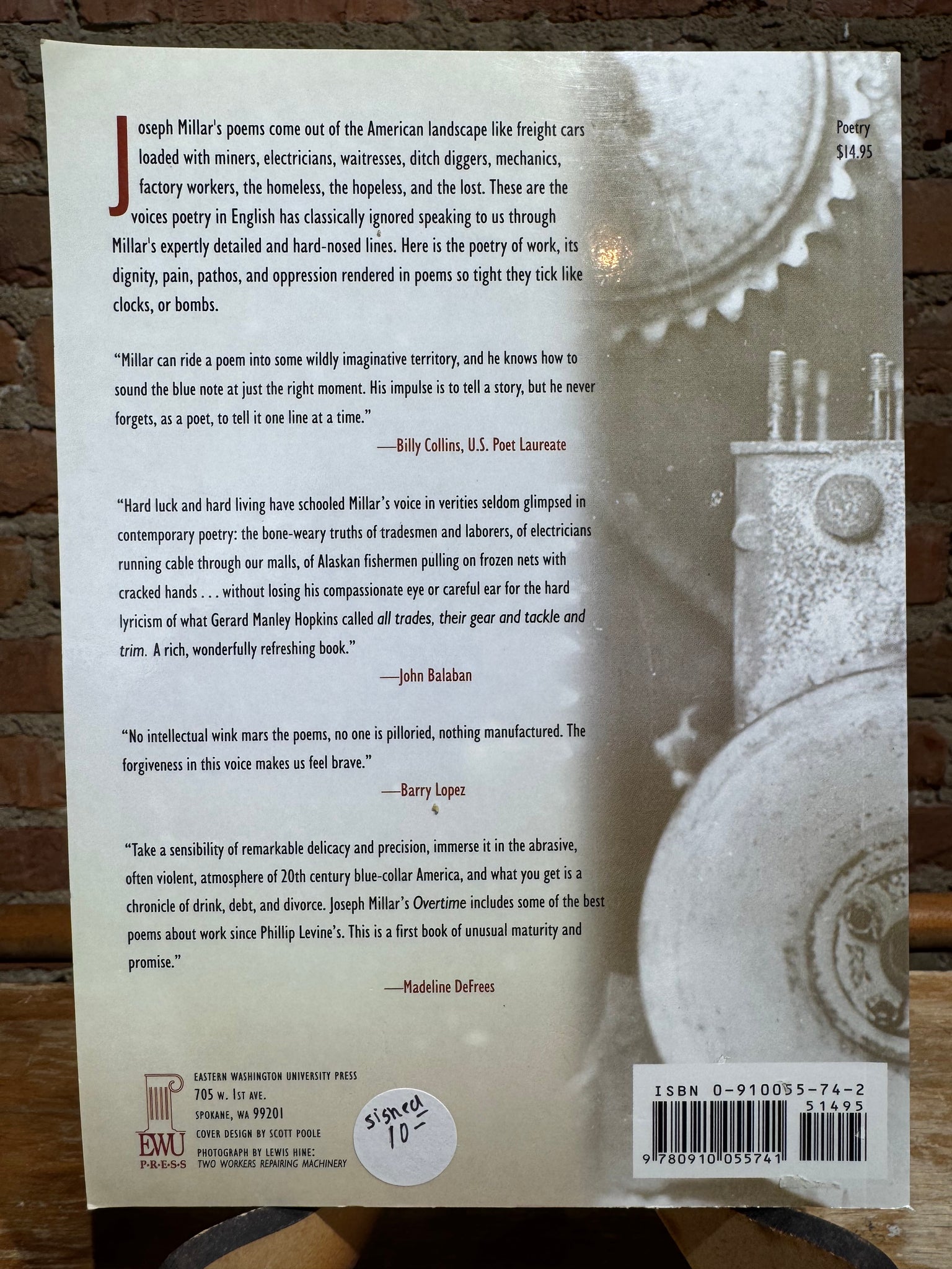 Overtime by Joseph Millar (used paperback, ISBN 0910055742, Eastern Washington University Press, 2001)