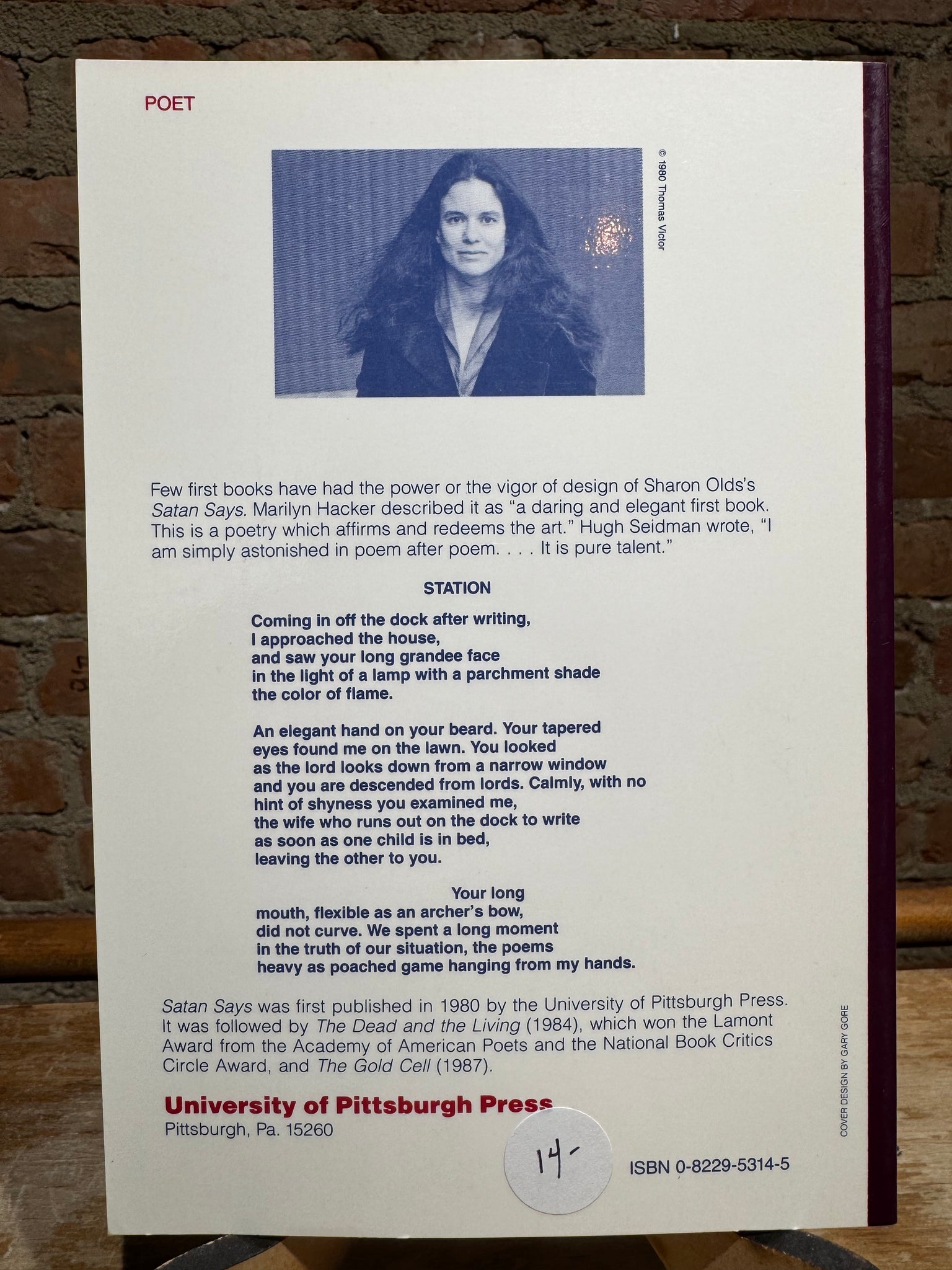 Satan Says by Sharon Olds (used paperback, ISBN 0822953145, University of Pittsburgh Press, 1990)
