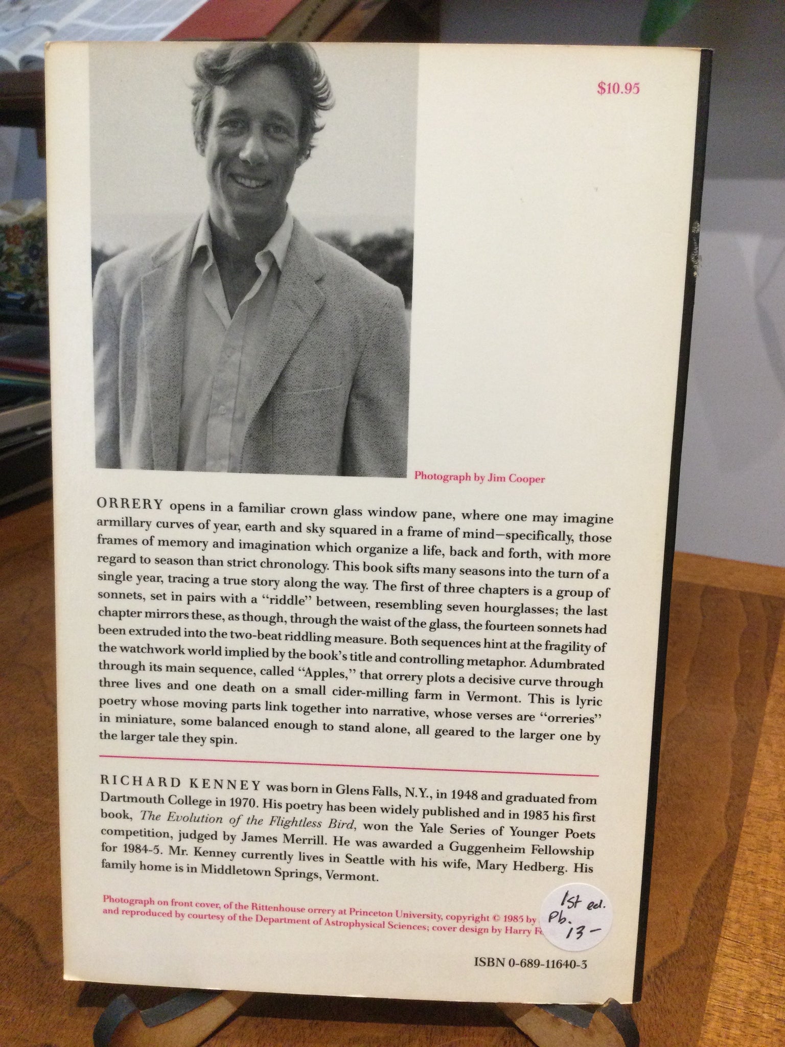 Orrery, by Richard Kenney (used paperback, ISBN 0689116403, Atheneum, 1985)