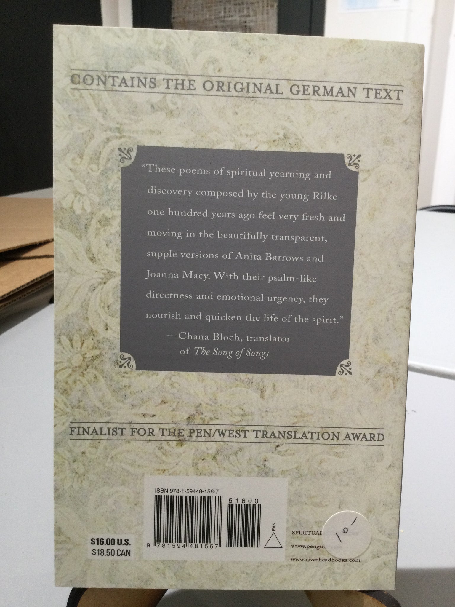 Rilke's Book of Hours: Love Poems to God, by Rainer Maria Rilke, translated by Anita Barrows and Joanna Macy (used paperback, ISBN 9781594481567, Riverhead Books, 2005)