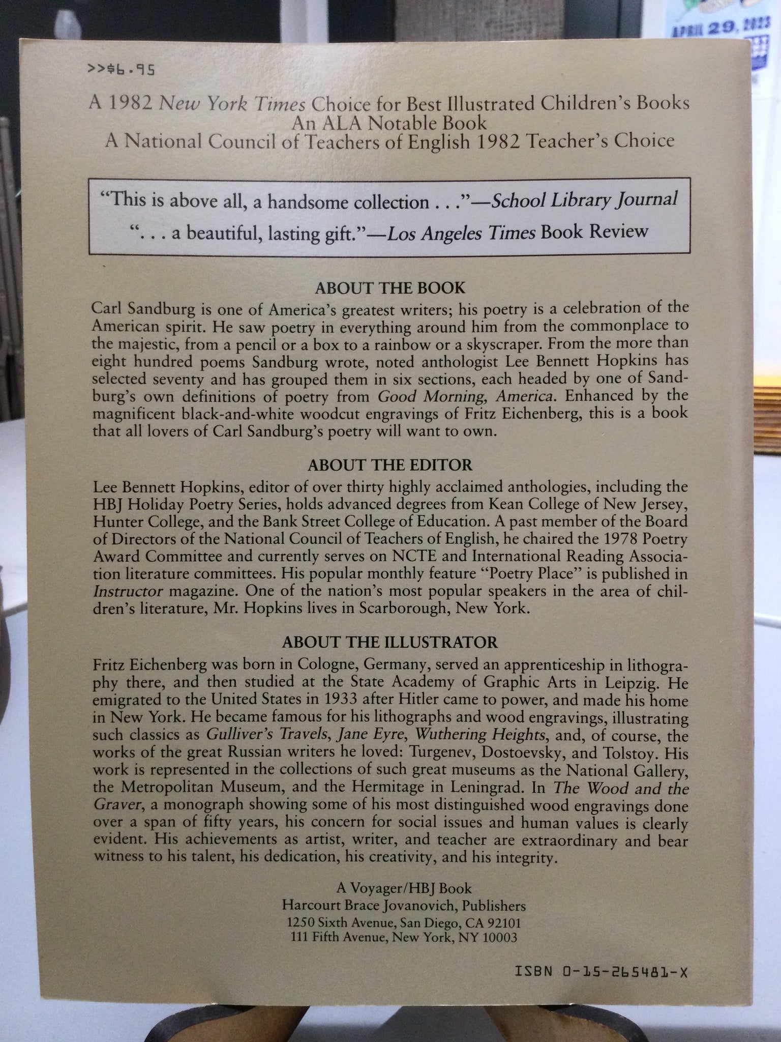Rainbows are Made, poems by Carl Sandburg, selected by Lee Bennett Hopkins (used paperback, ISBN 015265481X, Harcourt Brace Jovanovich, 1982)