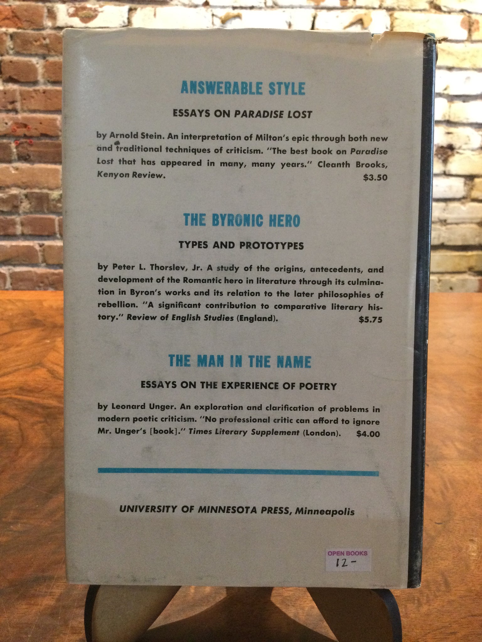 John Donne's Lyrics: The Eloquence of Action, by Arnold Stein (used hardcover, University of Minnesota Press, 1965)