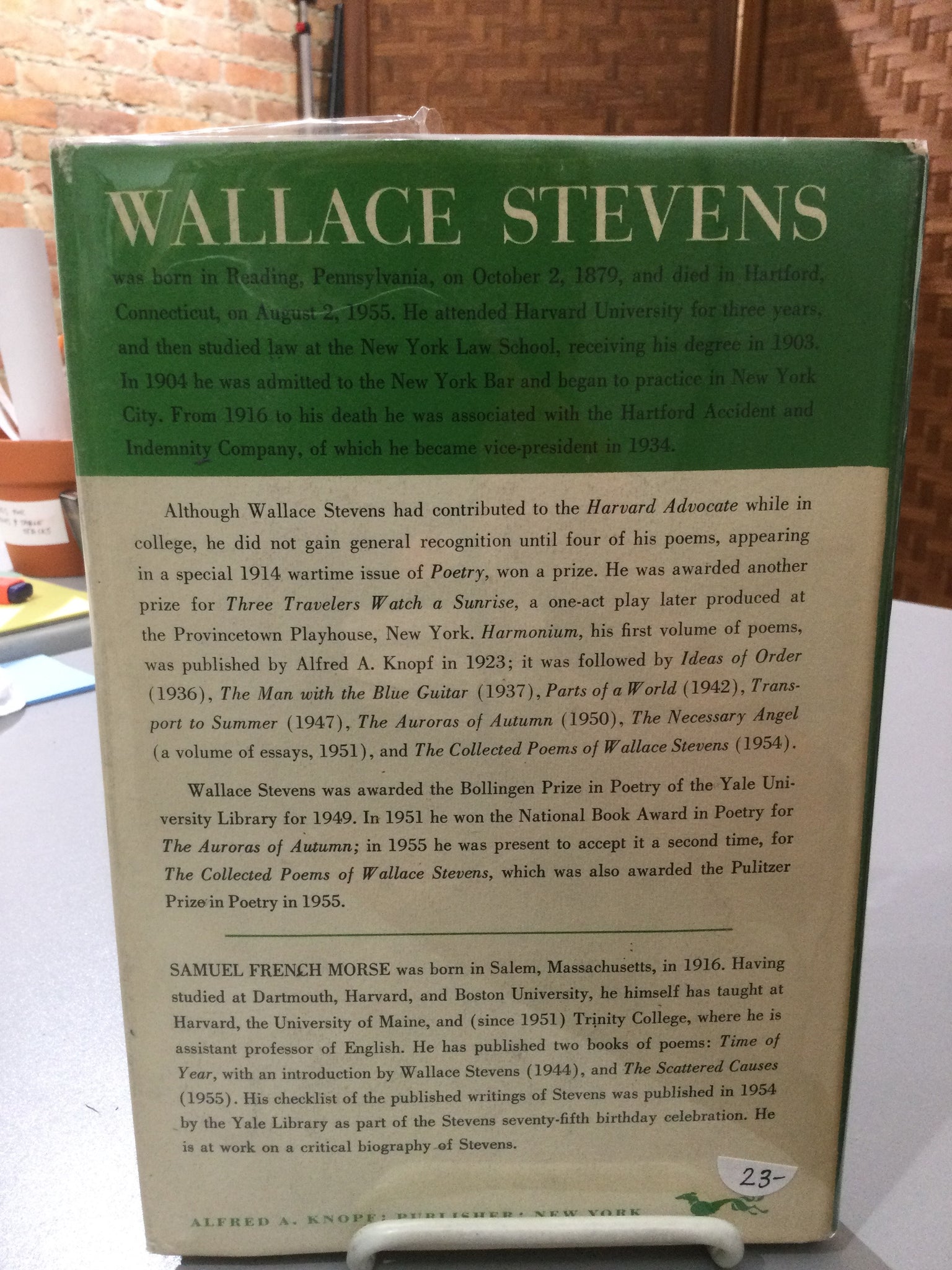 Opus Posthumous: Poems, Plays, Prose by Wallace Stevens, edited by Samuel French Morse (used hardcover, Alfred A. Knopf, 1966)