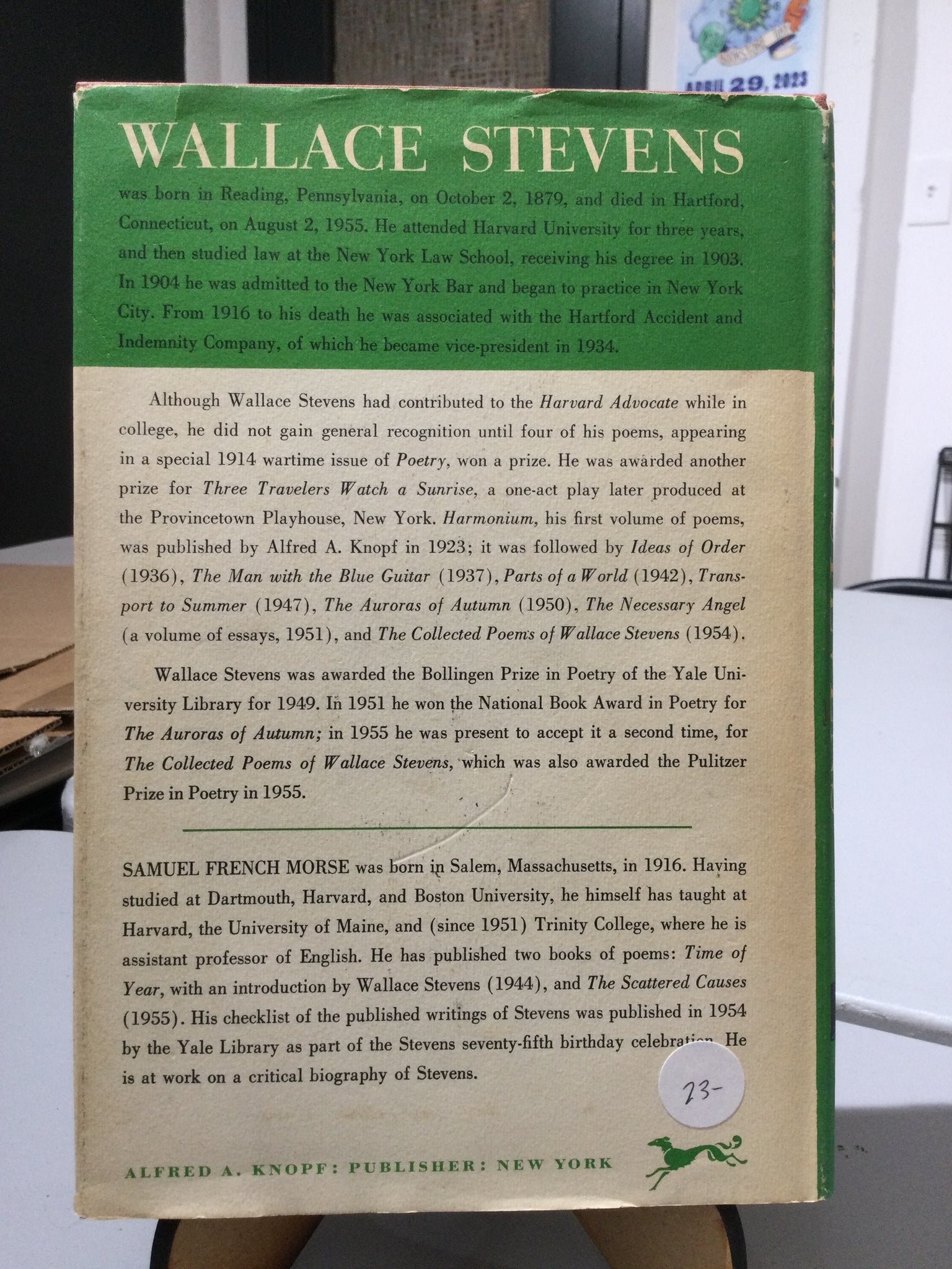 Opus Posthumous, by Wallace Stevens, edited by Samuel French Morse (used hardcover, Alfred A. Knopf, 1966)