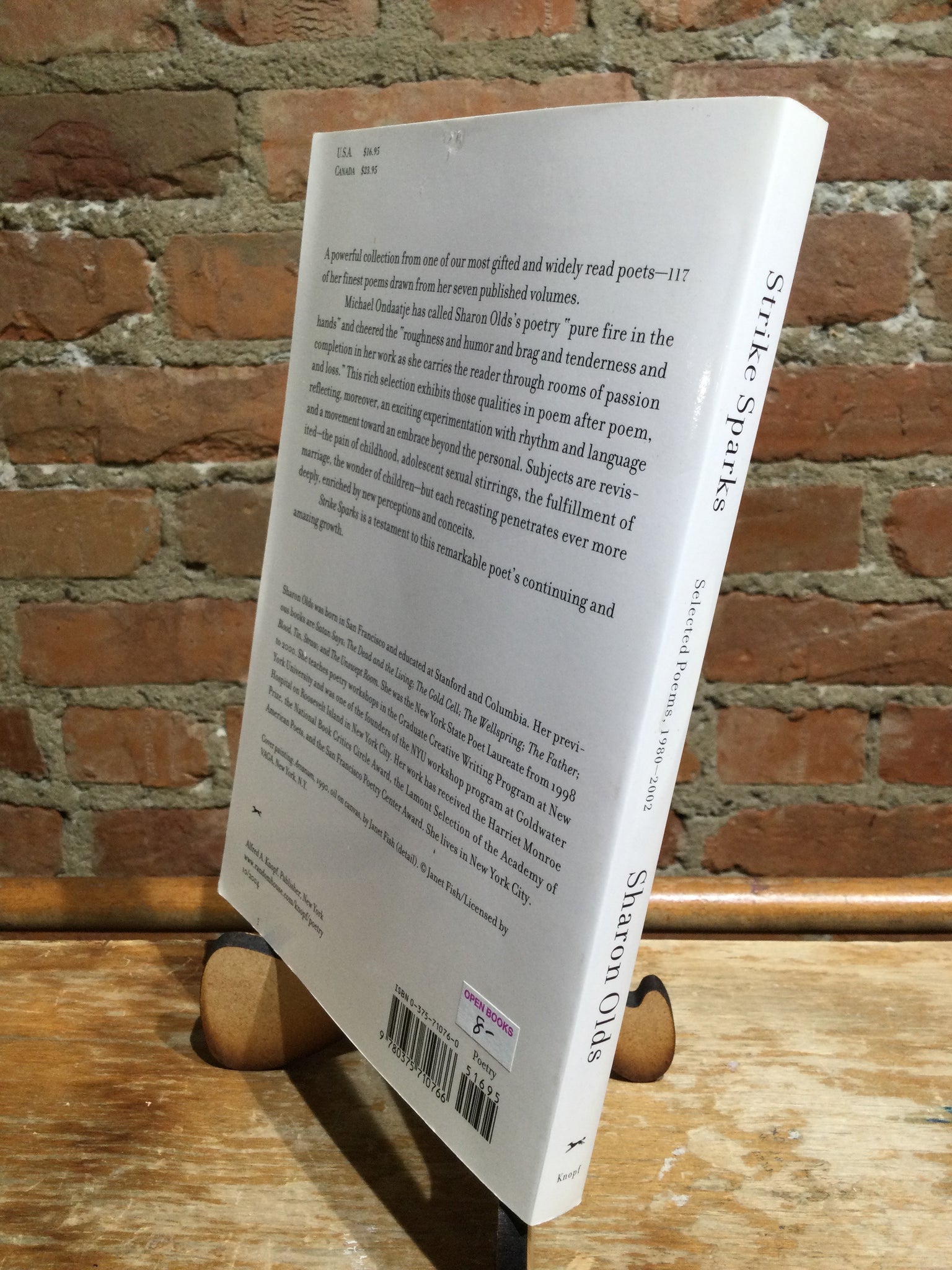 Strike Sparks: Selected Poems 1980-2002, by Sharon Olds (used paperback, ISBN 0375710760, Knopf, 2004)